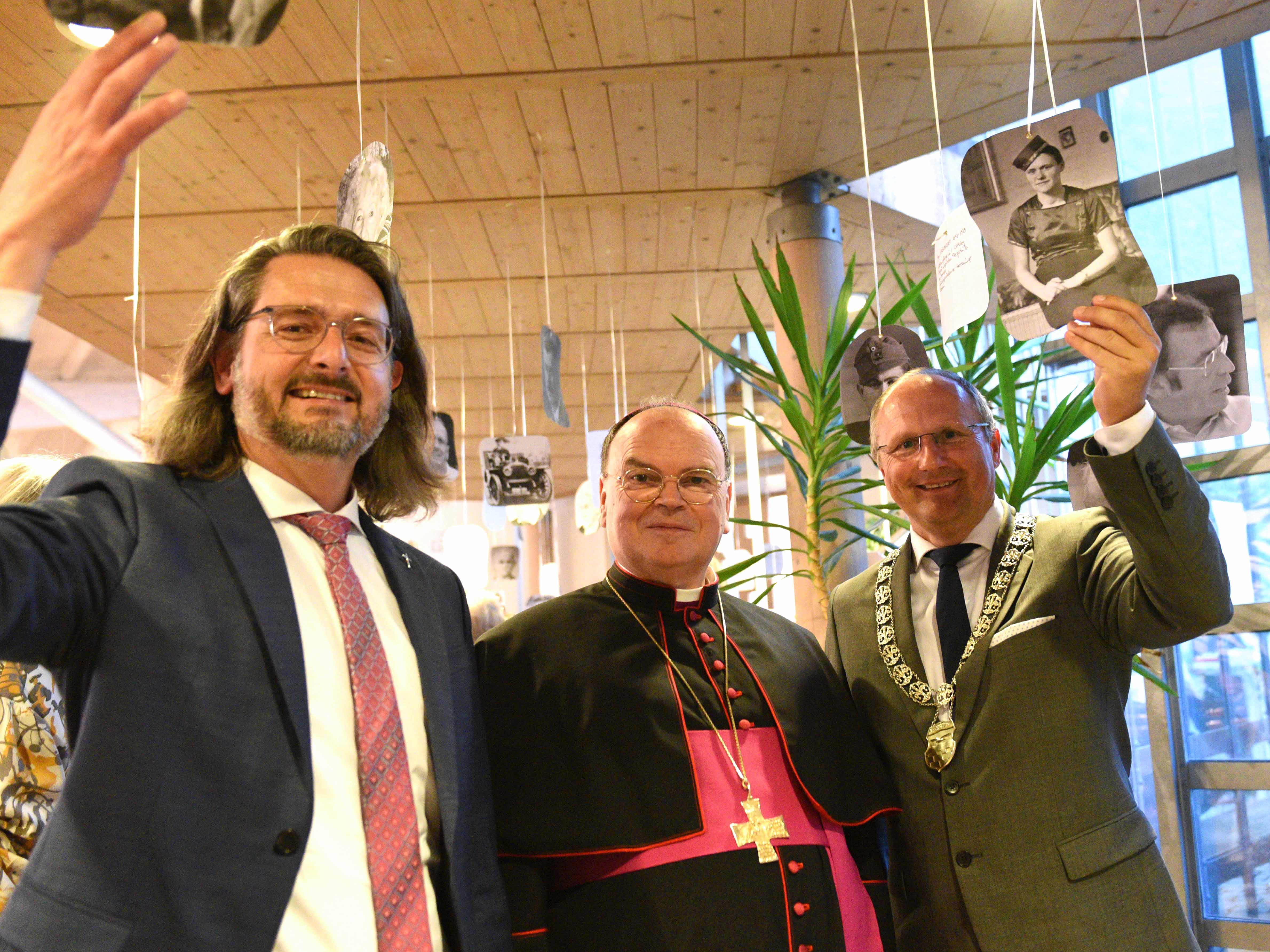 Es klingt nach einer einfachen Idee, aber der Charme dieser Idee nahm wohl jeden gefangen, der am Wochenende der Ausstellungseröffnung in St. Nikolaus in Herrsching beiwohnte: 100 Jahre Pfarrei wurde symbolisiert durch 100 Portraits von Menschen aus Herrsching aus dieser Zeit, die wie ein Mobile vom Deckenraum der Kirche hingen. Vorausgegangen war der Vernissage eine feierliche Vesper mit Bischof Dr. Bertram Meier, mit der das Festwochenende seinen Auftakt nahm.