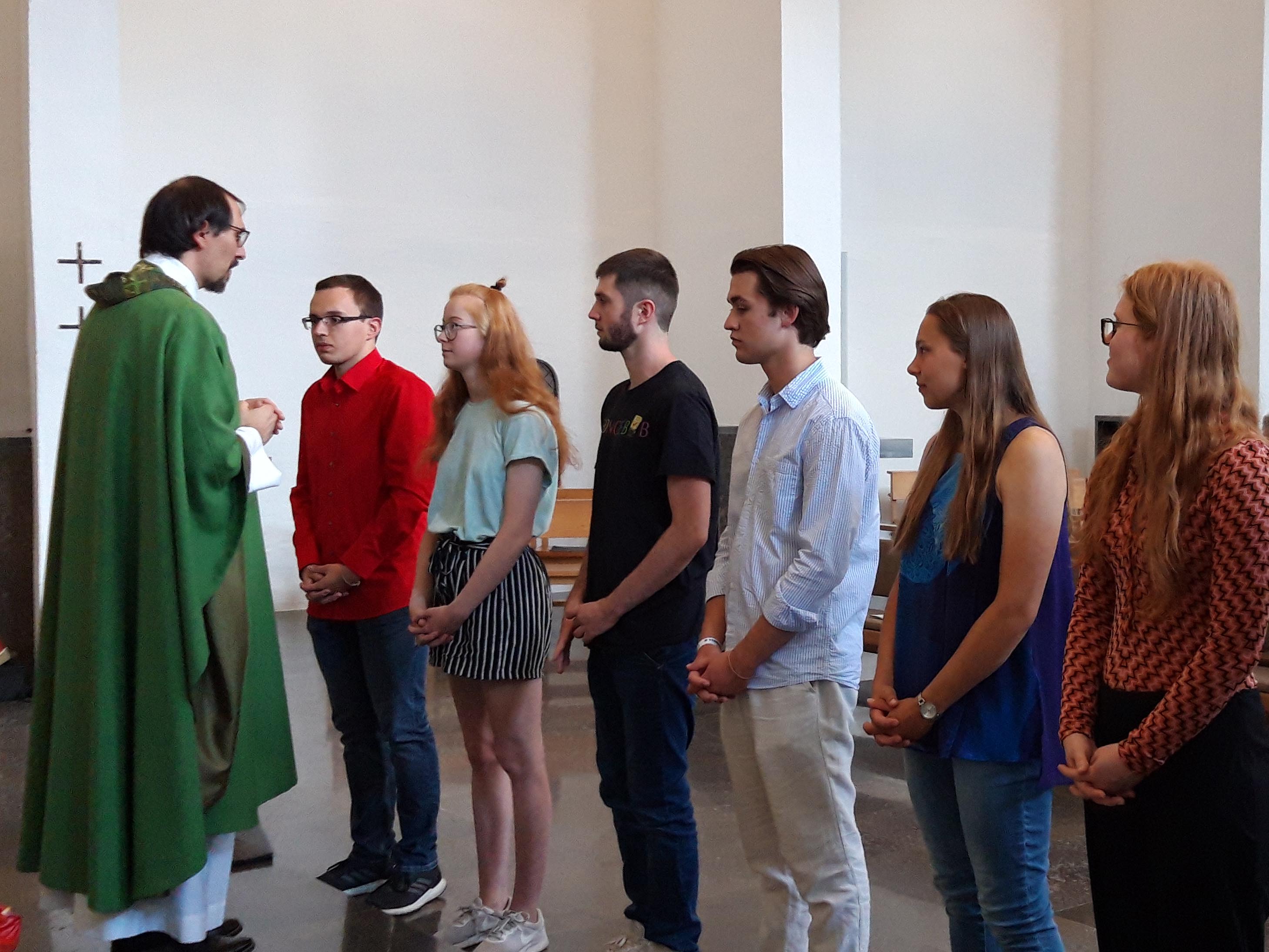 Am Sonntag hat Verbändereferent Pfarrer Dominik Zitzler fünf junge Frauen und drei Männer im Beisein von Familie und Freunden in den Weltfreiwilligendienst des Bistums Augsburg ausgesendet. In einer Gottesdienstfeier im Exerzitienhaus Leitershofen erhielten die Freiwilligen den Segen und ein Tagebuch für ihre Reise. In den kommenden Wochen werden sie ein soziales Jahr in Lateinamerika, Afrika und Osteuropa antreten. Vor der Aussendungsfeier fand für die Freiwilligen ein Seminarwochenende statt, in dem die letzten Vorbereitungen auf das Auslandsjahr getroffen wurden.