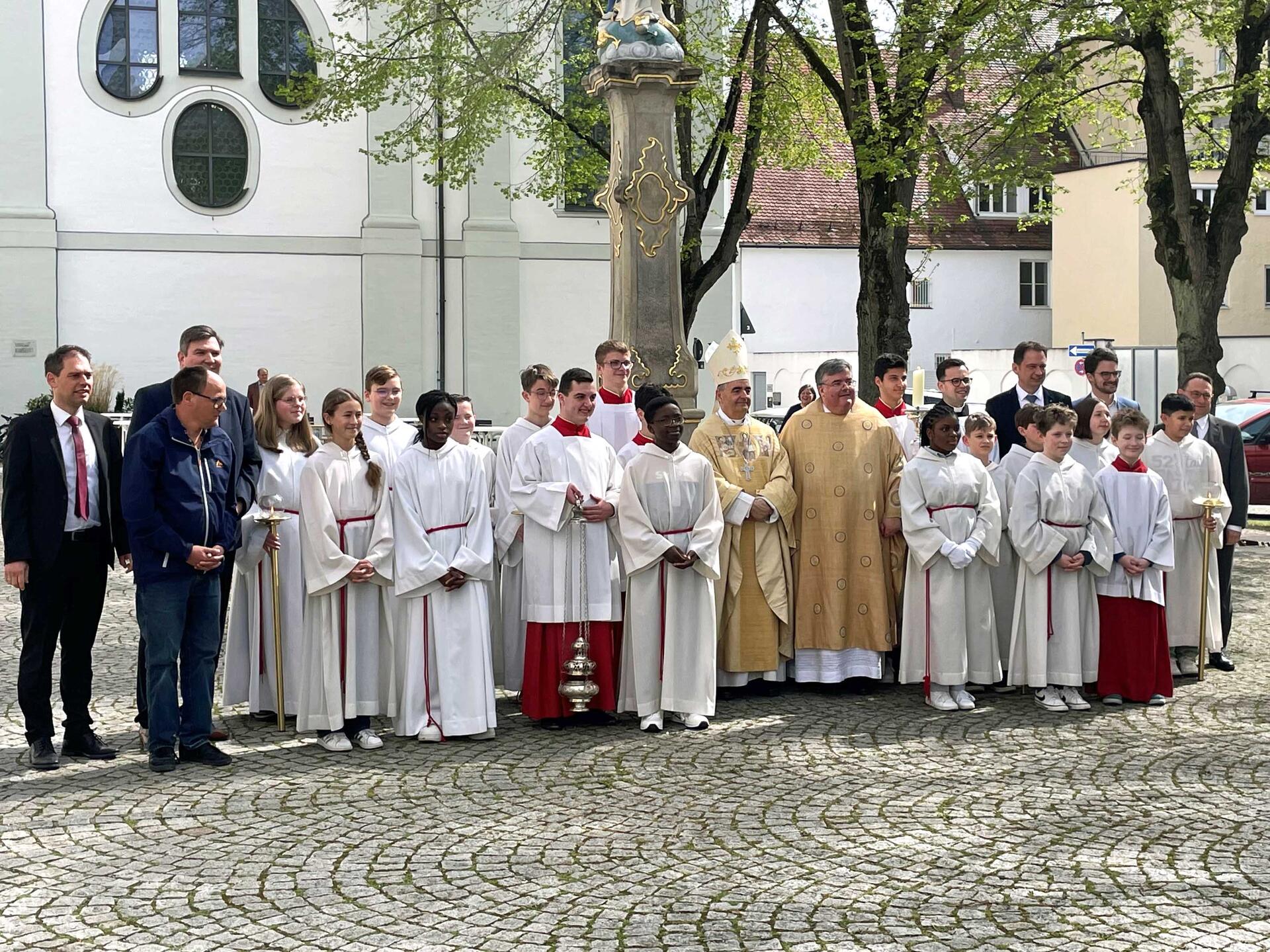 Nach dem Gottesdienst hatten die Gläubigen auf dem Basilikaplatz bei schönstem Frühlingswetter die Gelegenheit, mit dem Nuntius noch ein paar Worte zu wechseln und gemeinsame Fotos zu schießen, eher dieser am Nachmittag wieder mit dem Zug zurück nach Berlin fuhr.