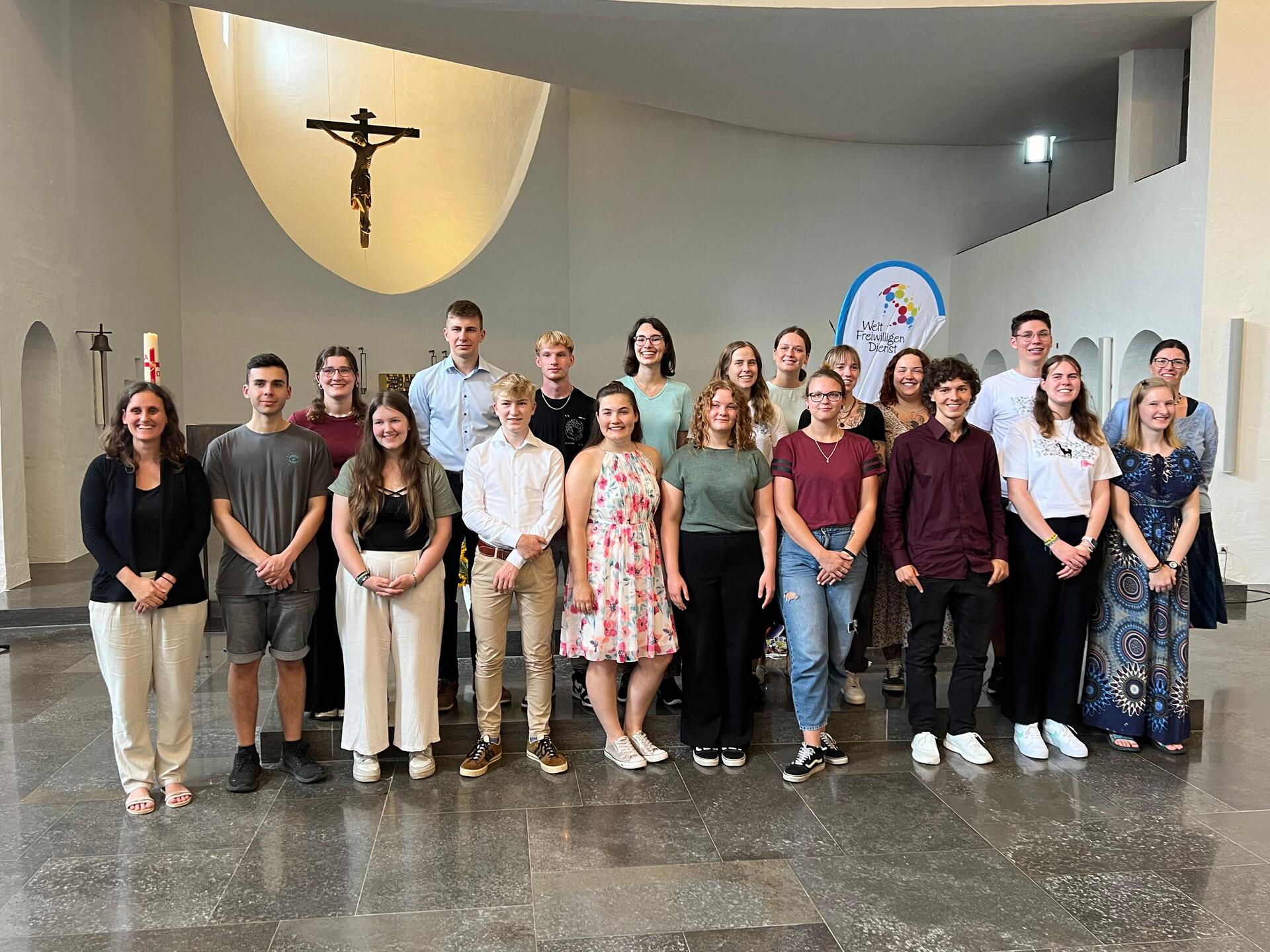 Am Sonntag, den 4. August, wurden sieben junge Frauen und drei junge Männer im Beisein von Familie und Freunden in den Weltfreiwilligendienst des Bistums Augsburg verabschiedet. In einer feierlichen Zeremonie im Exerzitienhaus Leitershofen erhielten die sie von Domvikar Dominik Zitzler den Segen für ihre Reise nach Lateinamerika und Afrika, die im August beginnt. Vorausgegangen war ein Seminarwochenende vor Ort, in dem die letzten Vorbereitungen für das Auslandsjahr getroffen wurden.