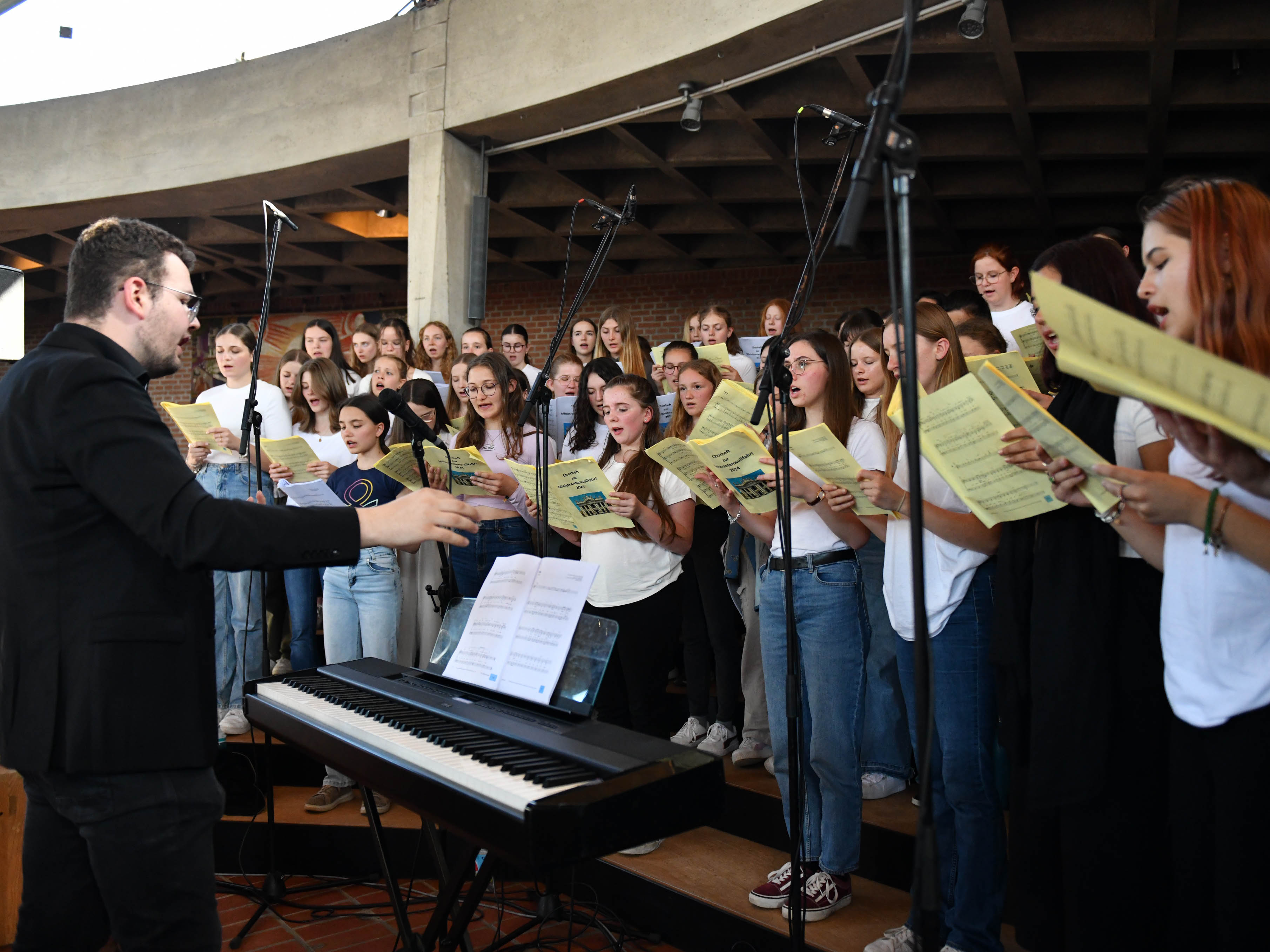 Auch musikalisch erhielt der Gottesdienst einen besonders stimmungsvollen Akzent, denn gesungen wurde von einem Ministranten-Projektchor unter der Leitung des Allgäuer Liedermachers Robert Haas. Zusammengesetzt aus 60 sangesfreudigen und hochmotivierten „Minis“ aus dem ganzen Bistum sang der Chor das Mottolied und weitere Lieder der Wallfahrt an diesem Sonntag zum ersten Mal vor größerem Publikum. In mehreren vorausgegangenen Proben hatten sie die Musikstücke gemeinsam einstudiert. Beim Eröffnungs- und Abschlussgottesdienst in Rom werden zwei große Auftritte in der Lateranbasilika folgen.