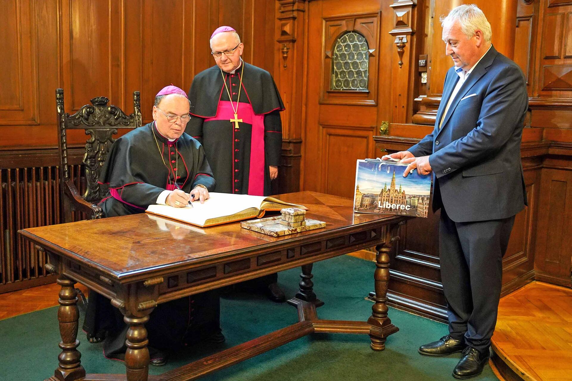 Auf Einladung des Bischofs von Leitmeritz Jan Baxant hat Bischof Bertram am vergangenen Wochenende das Nachbarland Tschechien besucht. Auf dem Programm dieser zweitägigen Kurzreise standen neben dem mitbrüderlichen Austausch unter anderem ein Gottesdienst in der Kirche St. Antonius in Liberec und ein Empfang durch den Stadtrat der Augsburger Partnerstadt. Begleitet wurde der Bischof vom Augsburger Stadtrat und Landtagsabgeordneten Andreas Jäckel und Dr. Miroslav Černý, der als Priester im Bistum tätig ist und aus der Diözese Leitmeritz stammt.