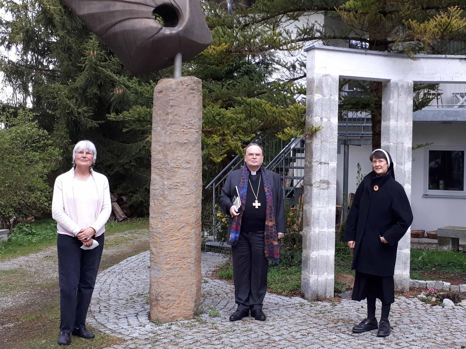 Bei einem Besuch der vom Künstler Erich Schickling geschaffenen Begegnungsstätte für Kunst und Religion in Eggisried bei Ottobeuren hat sich Bischof Dr. Bertram Meier über das Projekt „Spiritual Care und Kunst“ informiert. Das Projekt umfasst Seminarangebote vor allem für Menschen in den sogenannten „heilenden Berufen“, da die Park- und Atelierlandschaft des 2012 verstorbenen Künstlers, der zahlreiche sakrale Glasfenster und Wandmalereien gestaltet hatte, inmitten der Kulturlandschaft des Günztales heute als Gesamtkunstwerk gilt, das Sinne und Seele anspricht. Anliegen der noch jungen wissenschaftlichen Disziplin „Spiritual Care“ ist es, den Einfluss der spirituellen Dimension auf Gesundheit und Lebensbalance anzuerkennen und in die Gesundheitsversorgung einzubringen.