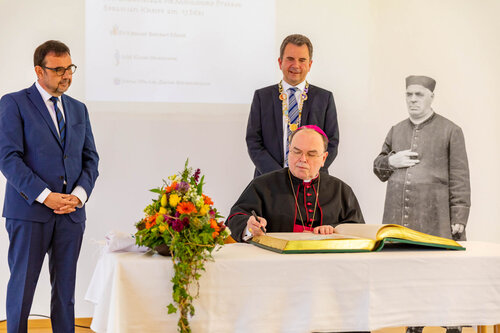 „Vergesst mir die Seele nicht“ – mit diesen Worten Pfarrer Kneipps verabschiedete sich Bischof Bertram von den Gläubigen in der Kirche, bevor er sich im Anschluss an den Festgottesdienst noch in das Goldene Buch der Stadt Bad Wörishofen eintrug.