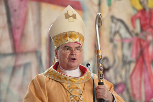 Zu Beginn seiner Predigt stellte der Bischof die Frage: „Ist die Kirche vielleicht schon profan, das heißt außerhalb des Heiligen, längst bevor wir Gotteshäuser offiziell profanieren?“ Die Coronakrise halte der Kirche insofern auch den Spiegel vor – was müsse man im kirchlichen Leben ausbauen und verstärken, aber auch: Worauf könne man verzichten, wovon müsse man sich trennen?