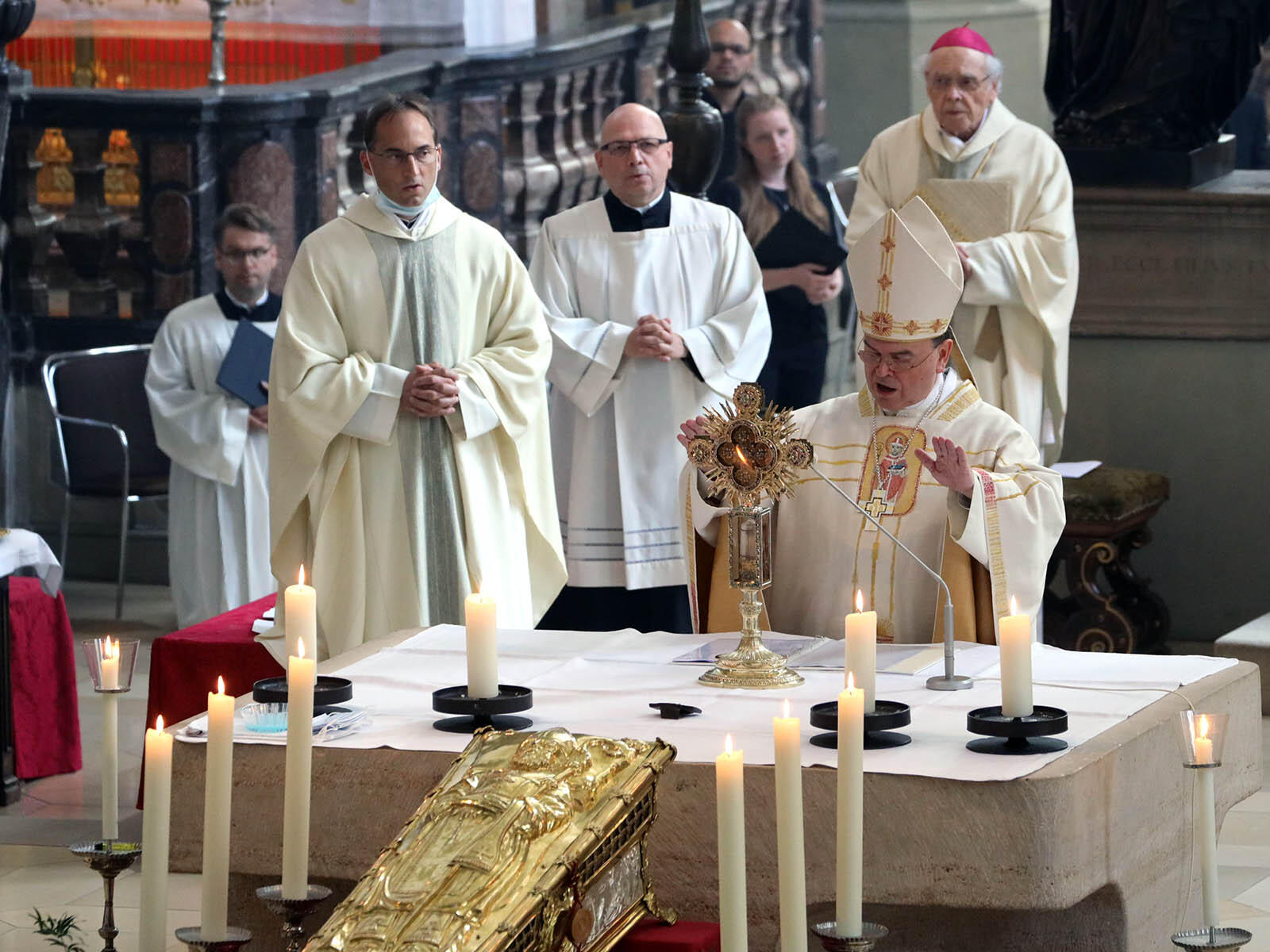 Zudem erinnerte der Bischof noch an die Ulrichswoche 2019: Genau vor einem Jahr hatte Papst Franziskus das Rücktrittsgesuch seines Amtsvorgängers Konrad Zdarsa angenommen. „Das Messgewand, das der Bischof vor einem Jahr zum Ulrichsfest trug, ist das gleiche. Der Träger hat gewechselt“, sagte Bischof Bertram und dankte seinem Vorgänger von Herzen für seinen Hirtendienst in der Ulrichsstadt.
