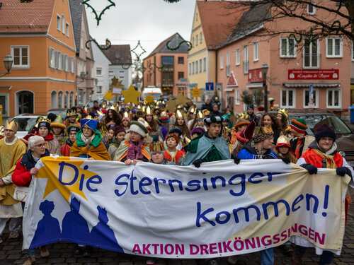 Der Brauch des Sternsingens in Deutschland lässt sich bis in das 16. Jahrhundert zurückverfolgen und entwickelte sich vermutlich aus den mittelalterlichen Dreikönigsspielen. Seit Mitte des 20. Jahrhunderts werden die traditionell durch die katholischen Kirchengemeinden veranstalteten Sternsingeraktionen durch das Kindermissionswerk „Die Sternsinger“ zentral koordiniert und unterstützt. Heuer steht die deutschlandweite Aktion unter dem Motto „Sternsingen gegen Kinderarbeit – Schule statt Fabrik“.