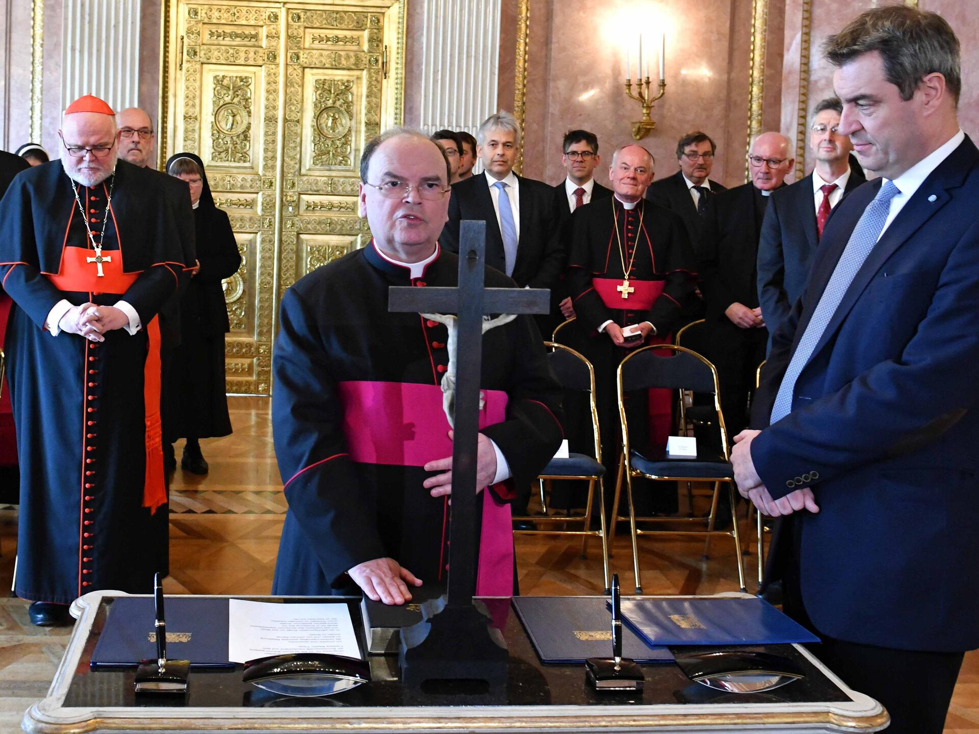 Der ernannte Bischof stellte zudem auf ein facettenreiches Miteinander zum Wohle der Menschen ab. Angefangen von Kindertagesstätten und dem Schulwesen bis hin zum Sozialbereich und kirchlichen Stiftungen. Die Kirche nehme bei ihrem Dienst für Gott und an den Menschen auch gesellschaftliche Aufgaben wahr, für die sie seit alters her Leistungen des Staates, so genannte Dotationen, erhalte. In diesem Zusammenhang sicherte er zu, die Diözese Augsburg werde wie schon bisher angemessene Angebote zur Ablösung dieser Dotationen oder für deren verwaltungsmäßige Vereinfachung annehmen.