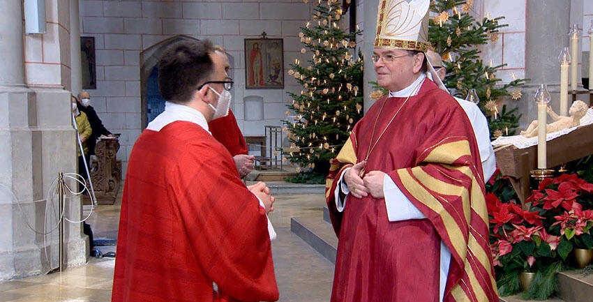 (katholisch1.tv) Am 2. Weihnachtsfeiertag sind im Augsburger Dom zwei Männer zu ständigen Diakonen geweiht worden. Manfred Selg aus der Pfarrei Sankt Nikolaus in Pfronten und Filip Bäder aus Bad Wörishofen. Normalerweise wäre der Dom vollbesetzt gewesen, mit Familie und Freunden, mit Wegbegleitern aus den Pfarreien: Das ging natürlich nicht, aber die Weihe selbst war trotzdem feierlich.