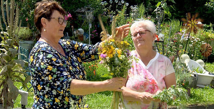 (katholisch1.tv) Am kommenden Samstag feiert die Kirche das Hochfest Mariä Himmelfahrt. Es ist ein alter Brauch, in den Tagen davor Kräuter und Blumen zu sammeln und diese zu einem Kräuterbuschen oder -büschel zu binden. Der Brauch geht auf eine Erzählung zurück, wonach ein wundersamer Kräuterduft das Grab Marias erfüllt habe. Die gebundenen Sträuße werden gesegnet und sollen Mensch und Tier vor Unheil schützen. katholisch1.tv hat in Scherstetten zwei kräuterkundige Frauen getroffen und sich zeigen lassen, was man für einen solchen Strauß alles braucht.