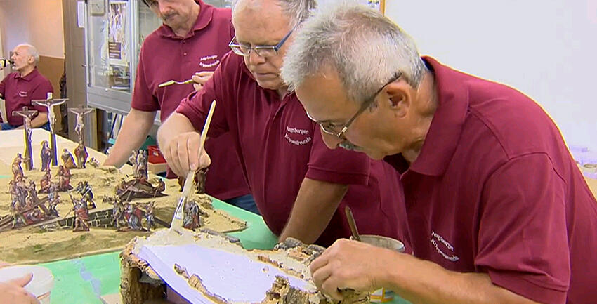 (katholisch1.tv) In 20 Wochen ist wieder Weihnachten und die sind schnell vorbei – vor allem, wenn man große Pläne hat. So wie die Augsburger Krippenfreunde, die zum 100-jährigen Jubiläum eine umfangreiche Ausstellung im Museum Oberschönenfeld vorbereiten. Und weil Krippen nicht einfach fertig vom Himmel fallen, wird seit Monaten eifrig gebaut. Wir haben die Krippler an einem heißen Freitagabend besucht.