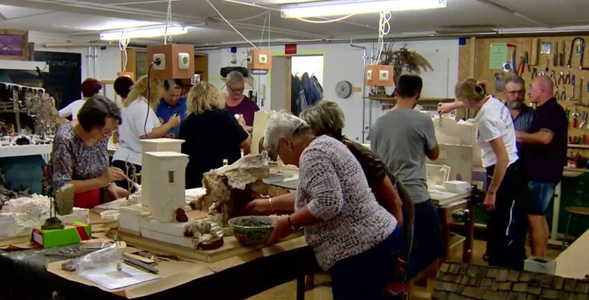 (katholisch1.tv) katholisch1.tv war in Mertingen zu Gast beim Kurs der Krippenbaumeisterin Johanna Reiter: Sie beschäftigen sich also jetzt - Mitte Oktober - schon mal mit Weihnachtskrippen. Die müssen schließlich irgendwann gemacht werden, denn in Krippen stecken Dutzende von Arbeitsstunden. Seit ein paar Wochen läuft in Mertingen ein Krippenbaukurs. Und der läuft wie geschmiert, sogar Hebauf konnte schon gefeiert werden!
