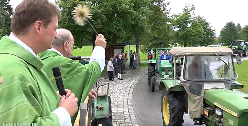 (katholisch1.tv) Die Pfarr- und Wallfahrtskirche Heilig Kreuz in Maria Rain gilt als Anziehungspunkt für viele Menschen aus nah und fern. Die so genannte "schönste Dorfkirche im Allgäu" aus dem 15. Jahrhundert lockt jährlich tausende Fuß- und Radwallfahrer an. Doch alle zwei Jahre kommen die Gläubigen auf eine etwas andere Art und Weise dorthin. Mit ihrem Traktor. Denn dann lädt die Pfarrei zum Wallfahrtsgottesdienst mit anschließender Traktorensegnung und kleiner Rundfahrt ein. In diesem Jahr war es wieder soweit. Wir waren mit dabei.