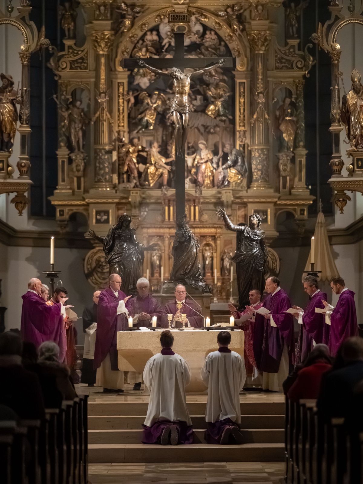 Bischof Bertram appellierte eindringlich: „Auch wenn natürlich Staaten das Recht haben, sich zu verteidigen oder unter Umständen Gewalt zum Schutz ihrer Bürgerinnen und Bürger einzusetzen, sollten wir nie vergessen: Gewalt allein schafft keinen Frieden. Die heutige Lesung und das Evangelium sind hier eindeutig: Ein dauerhafter und gerechter Friede beruht auf Wahrheit und Barmherzigkeit.“ In seiner Predigt erinnerte er an die vielen Kriegsgebiete auf der Welt: „Zerstörte Städte, geschwächte Zivilgesellschaften, politische Repressionen, wirtschaftliche Nöte, religiöse Spannungen, Menschen auf der Flucht. All dies finden wir wieder und wieder in unterschiedlichen Ausprägungen. Immer ist Vertrauen auf lange Zeit zerbrochen. Ein echter Friede wird dort nicht möglich sein, ohne dass Schuld benannt wird. Ohne dass Unrecht anerkannt wird. Ohne dass die Wahrheit ans Licht kommt.“
