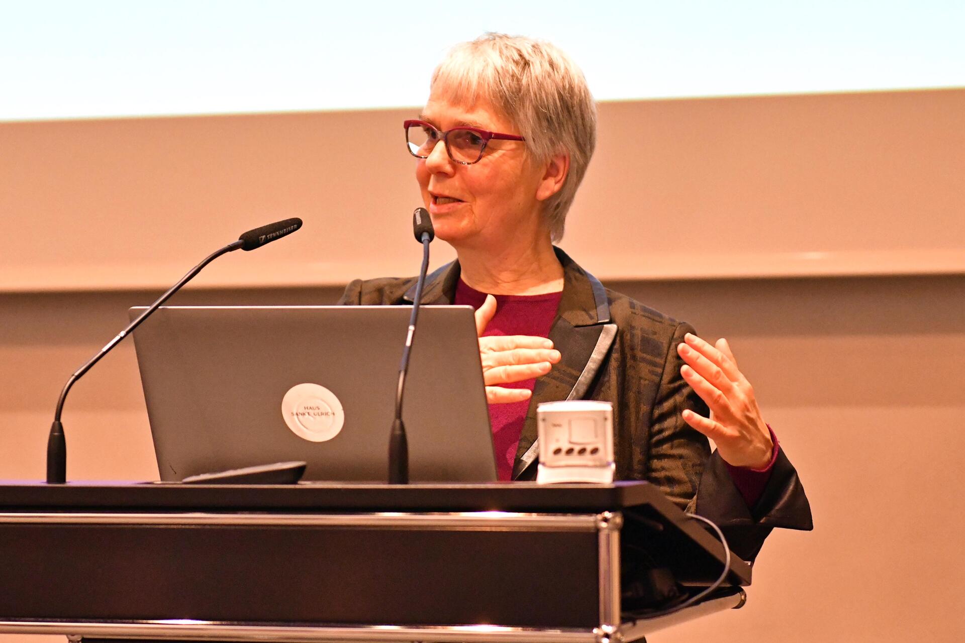 Die Würzburger Fundamentaltheologin Hildegund Keul, die ihren Vortrag unter den Titel „Schöpfung durch Verlust“ stellte, schlug gleich zu Beginn die Brücke von ihrem Vorredner zu ihren eigenen Überlegungen. Denn Angst sei nichts Anderes als „Angst davor, verwundet zu werden“. Für jeden Einzelnen, für die Kirche, aber auch für die gesamte Gesellschaft sei es daher eine Herausforderung sich immer wieder zu fragen, was wir tun könnten, um befürchtete Wunden zu verhindern oder auch erhoffte Wunden zuzufügen, wann es notwendig ist, sich vor Verwundungen zu schützen oder auch mal ins Risiko zu gehen. Denn: „Vulnerabilität fordert zum Handeln auf“, so Keul. Der Versuch, sich durch Sicherungsstrategien wie Mauern, Waffen oder Remigration unverwundbar zu machen befördere Extremismus und sei eine gefährliche Utopie. Getreu dem Motto: „Lieber Andere verletzen als selbst eine Verletzung erleiden.“