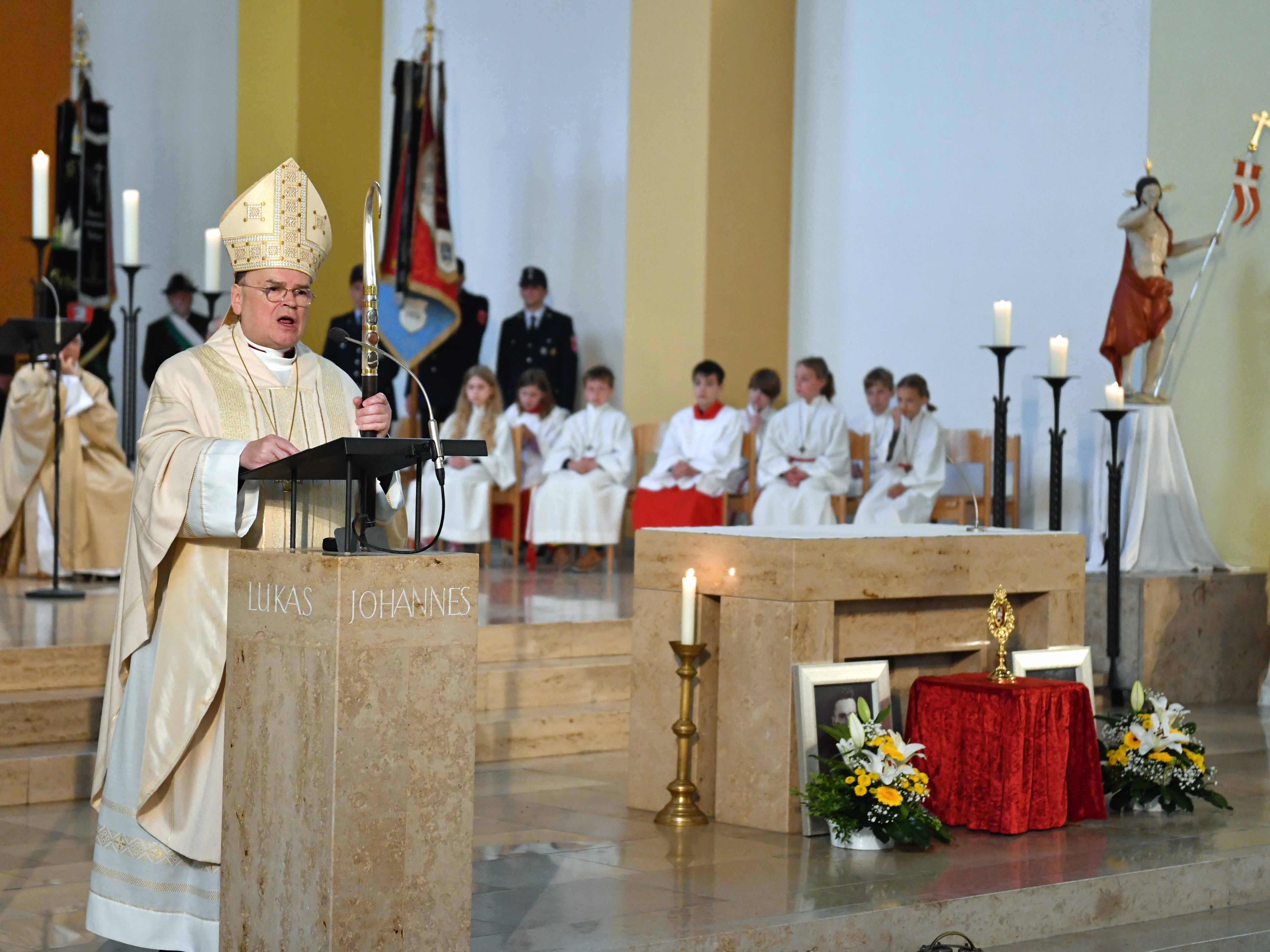 Zugleich erinnerte er die Schondorfer an die große Verantwortung, die sie nun zu tragen hätten: „Reliquien bauen Brücken.“ Mit dieser Geste der Versöhnung werde deutlich, dass Schondorf damit in die Gemeinschaft der Heiligen eingebettet sei. „Augenscheinlich wird sichtbar, was es heißt, in die Weltkirche eingegliedert zu sein: stark vor Ort und zugleich vernetzt mit der weltweiten Kirche. Bleiben wir in diesem Netz, das trägt und hält. Seien wir einander Stütze und Kraft aus der Gemeinschaft der Heiligen“, ermutigte er die versammelte Gottesdienstgemeinde.