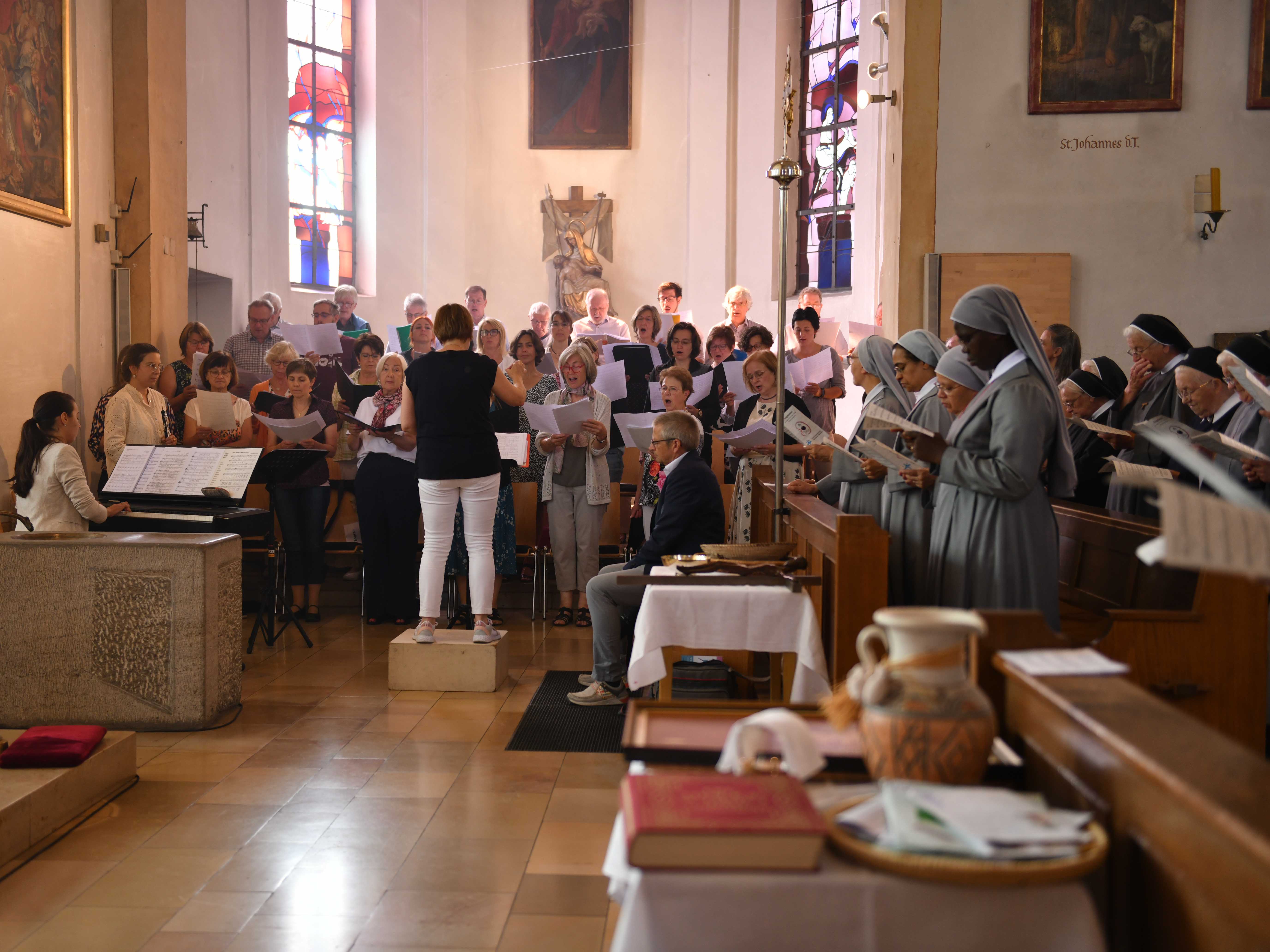 Neben dem Bischof, dem Pfarrer der PG Augsburg-Oberhausen, Bernd Weidner, weiteren Priestern und Diakonen feierte auch der Bischöfliche Beauftragte für Gottgeweihtes Leben, Domvikar Andreas Miesen, den Gottesdienst mit. Außerdem waren neben den Schwestern aus Augsburg auch Schwestern aus Österreich und Rom zum Gottesdienst und dem anschließenden Festprogramm angereist. Ein Projektchor der Pfarreiengemeinschaft sorgte für die feierlich musikalische Gestaltung der Messe.