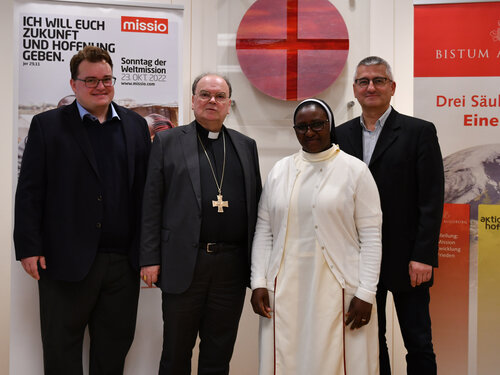 Anlässlich der missio-Kampagne zum Monat der Weltmission war kürzlich Sr. Modesther Karuri im Bistum Augsburg zu Gast. Sie ist als stellvertretende Leiterin der Caritas in Nairobi tätig und setzt sich dort für die Belange von Flüchtlingen und Menschen in Not ein. Bei einem Gespräch vor Medienvertretern in Augsburg machte Sr. Modesther auf die vielfältigen Probleme des ostafrikanischen Landes aufmerksam. Bischof Dr. Bertram Meier zeigte sich beeindruckt vom beispielhaften Einsatz der Schwester.