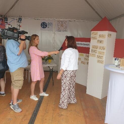 Die Diözesanratsvorsitzende Hildegard Schütz freute sich über die tolle Atmosphäre, das fröhliche Treiben und das hohe Interesse für den Stand des Diözesanrates: „Ich bin begeistert, dass wir als Kirche mit und inmitten der Stadt dieses Auftaktfest feiern und wir so öffentlich Präsenz zeigen mit all dem, was und wo Kirche an Gutem wirkt. Ein klares Zeichen für mich, dass die Kirche lebt!“ Auf das weitere Schicksal der Kirchenbausteine angesprochen, antwortet sie: „Der Diözesanrat wird sich in der kommenden Zeit, unter anderem auf seiner Frühjahrsvollversammlung im nächsten Jahr, verstärkt mit der Frage der Zukunft der Pfarreien beschäftigen und wie kirchliches Leben vor Ort lebendig gestaltet werden kann. Dazu werden die Äußerungen dem Diözesanrat ein wertvoller Impuls sein.“