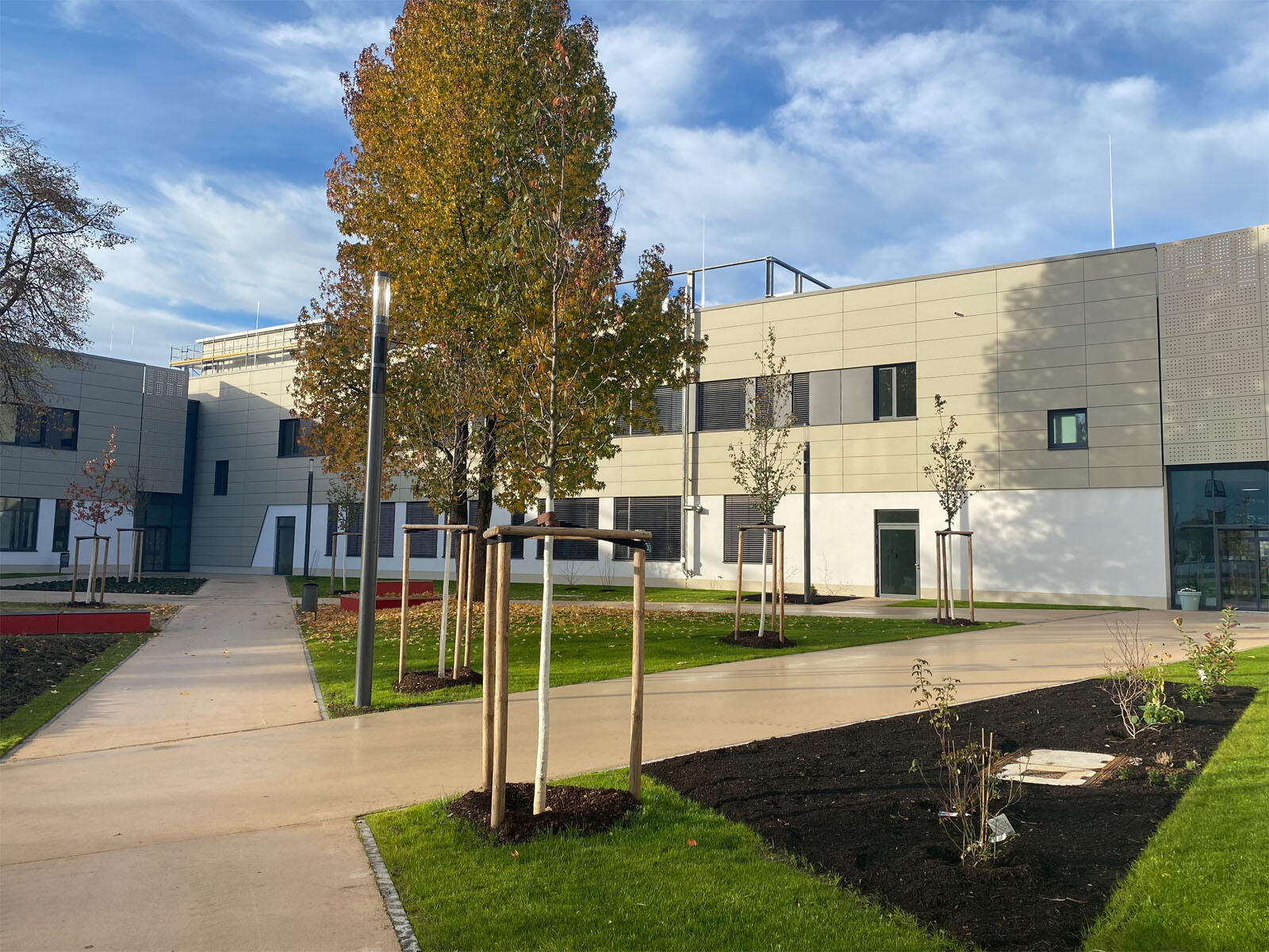 Seit Beginn des Schuljahres 2022/23 findet der Unterricht für die rund 800 Berufsschülerinnen- und schüler in den neuen, digital ausgestatteten Räumlichkeiten der Berufsschule, die sich auf dem Gelände des KJF Berufsbildungs- und Jugendhilfezentrum Sankt Elisabeth in Augsburg-Haunstetten befindet, statt. Darüber hinaus kehrten auch die KJF Fachschule für Heilerziehungspflege und Heilerziehungspflegehilfe sowie die KJF Fachakademie für Heilpädagogik an ihren alten Standort zurück. Beide befinden sich in einem eigenen Teil des Neubaus.