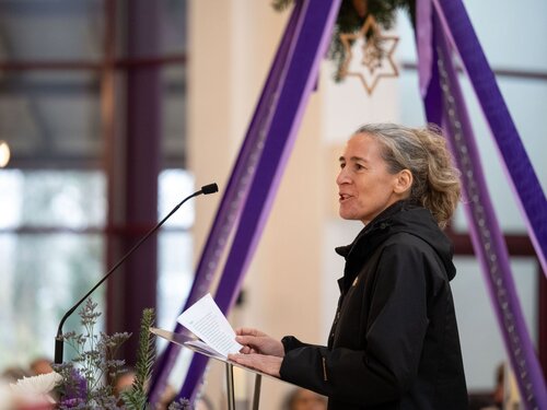 Für Dr. Ulrike Purrer, die Leiterin des Jugendzentrums, symbolisiert der runde Kranz ein Leben in Gemeinschaft: „Wir können uns weder losgelöst von der Schöpfung noch von allen anderen Menschen begreifen, sondern sind eine große Menschheitsfamilie“. An zu vielen Orten der Welt wachsen Kinder und Jugendliche ohne fließendes Wasser und Kanalisation, ohne Gesundheitsversorgung und Bildungsangebote auf. „Deshalb setzen wir uns gemeinsam mit den Jugendlichen für strukturelle Veränderungen der gesellschaftlichen Verhältnisse ein“ betonte die Theologin. Die Adveniat-Weihnachtsaktion zeige den Jugendlichen, dass sie nicht allein gelassen, sondern eingebettet sind in eine weltweite solidarische Gemeinschaft.