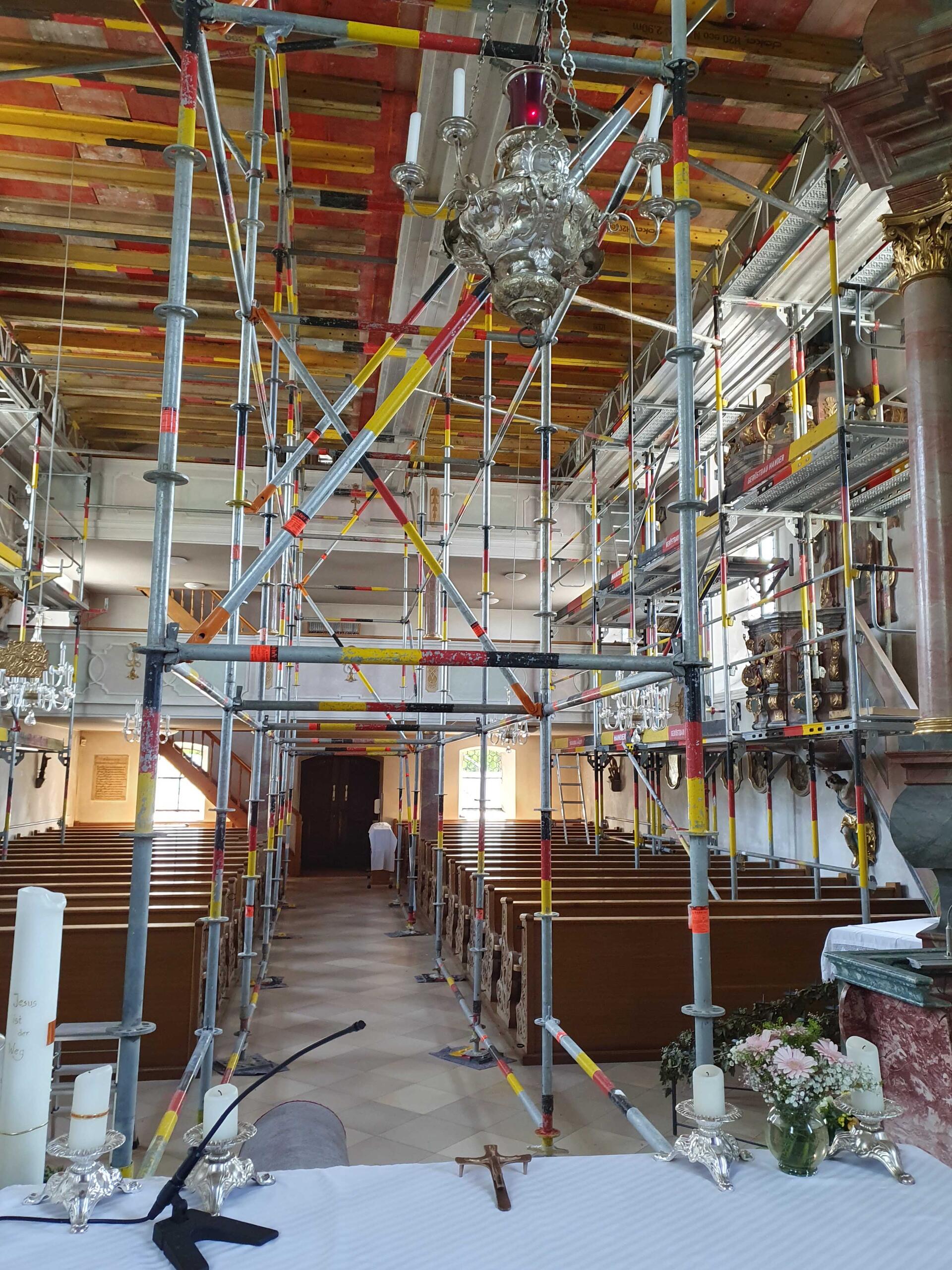 Am Kirchenturm und am Dach wurden ebenfalls einige Arbeiten ausgeführt. So gibt es nun einen neuen Aufgang zum Turm, beschädigte Dachplatten wurden ausgetauscht, Bleche erneuert und die Ziffernblätter der Turmuhr wurden ausgetauscht. Nicht alle Arbeiten waren zunächst vorgesehen und im Budget, aber dank örtlicher finanzieller Unterstützung von politischer Gemeinde und Bürgern konnten diese zusätzlich durchgeführt werden und nun erstrahlt die Kirche wieder im neuen Glanz.