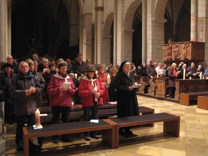 In einer Lichterprozession zogen Bischof und Gemeinde aus dem Südportal des Doms hinaus und zum Brautportal wieder hinein in das Kirchenschiff, um damit zum Ausdruck zu bringen, dass Jesus Christus die Tür zum wahren Leben und die Pforte zum Himmel ist und die Kirche die Tür des Glaubens stets offen hält. Am Ende der Feier wurden Vertreter aus unterschiedlichen Pfarreien der Diözese gesandt, in die Gesellschaft hinein das Licht des Glaubens zu bringen und aufstrahlen zu lassen.