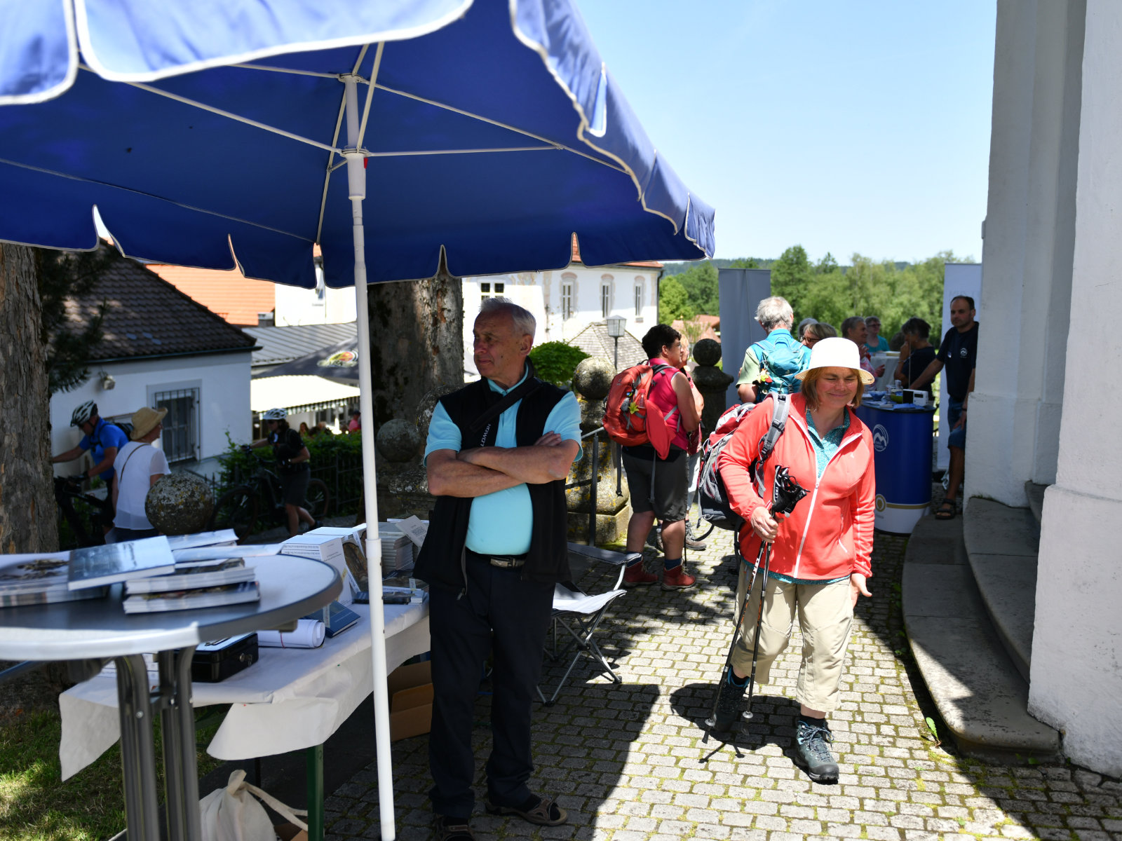 Im Anschluss an den Festgottesdienst wurde für die zahlreichen Pilgerinnen und Pilger ein Mittagessen veranstaltet, an das sich ein buntes Programm an geistlichen Angeboten anschloss. Während in der Kirche Rosenkranz gebetet oder beim Lobpreis mitgesungen werden konnte, gab es außerhalb die Möglichkeit zum Beichten oder zur Führung durch das Wiesmuseum. Zudem waren vor der Kirche Infostände verschiedener kirchlicher Medien und Institutionen aufgebaut, bei denen sich die Teilnehmenden des Gebetstages informieren und miteinander ins Gespräch kommen konnten.