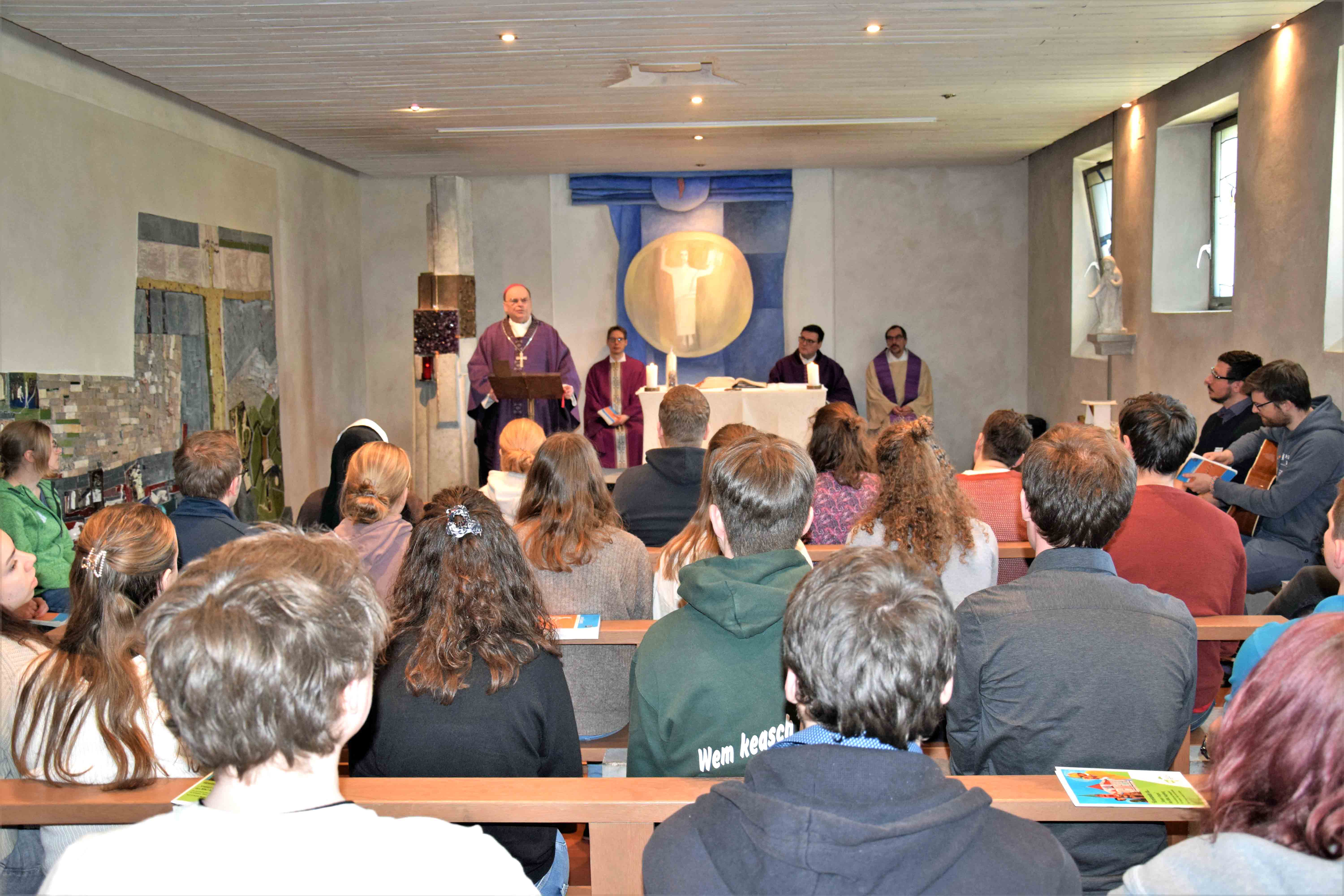 Ohne Jugend gebe es in Zukunft keine Kirche, betonte Bischof Dr. Bertram Meier in seiner kurzen Predigt in der Kapelle des Jugendhauses Elias in Seifriedsberg während des Gottesdienstes bei der Diözesanversammlung des Bundes der Deutschen Katholischen Jugend (BDKJ). Er stehe zur Jugend und wolle sich bei den zuständigen Pfarrern vor Ort dafür einsetzen, dass es für die Jugendorganisationen Unterstützung gebe, und dass der Jugend auf Augenhöhe begegnet werde, fuhr der Bischof fort.
