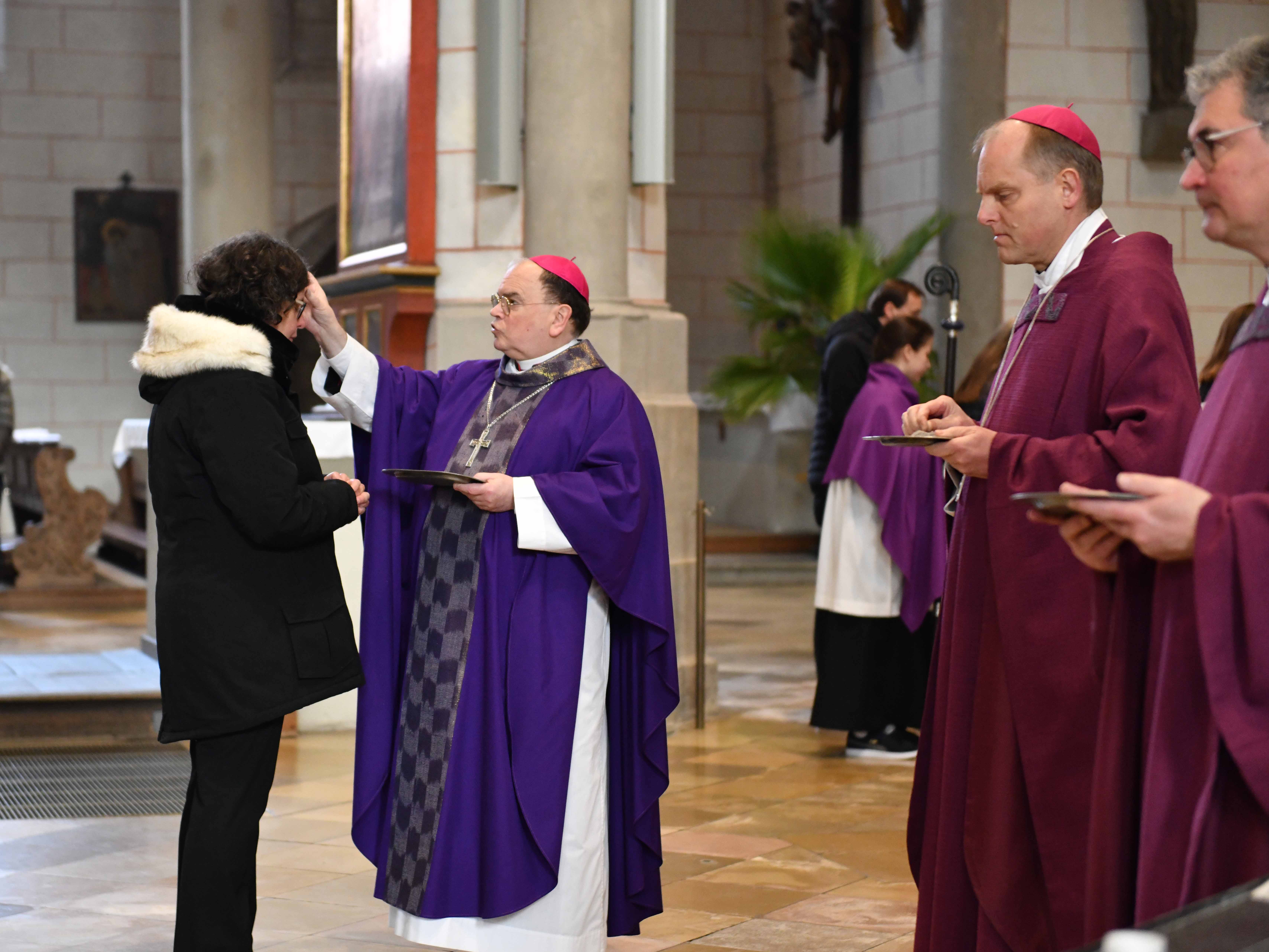 Als „Frühjahrsputz für Leib und Seele“ bezeichnete er das Fasten, das Gelegenheit gebe, auch den Alltag zu entschlacken. „Wo haben sich Gewohnheiten eingeschlichen, von denen ich weiß, dass sie nicht gut für mich sind? Das Hetzen von einem zum anderen Termin, das Nicht-Loslassenkönnen, das ewige Nörgeln und Besserwissen.“ Gerade in der Fastenzeit sei die Chance, sich die eigenen Schlagseiten und Abhängigkeiten bewusst zu machen, sagte Bischof Bertram und rief angesichts einer Welt, die von Klimakrise, Kriegen und Hunger zerrissen sei, zur Umkehr auf.