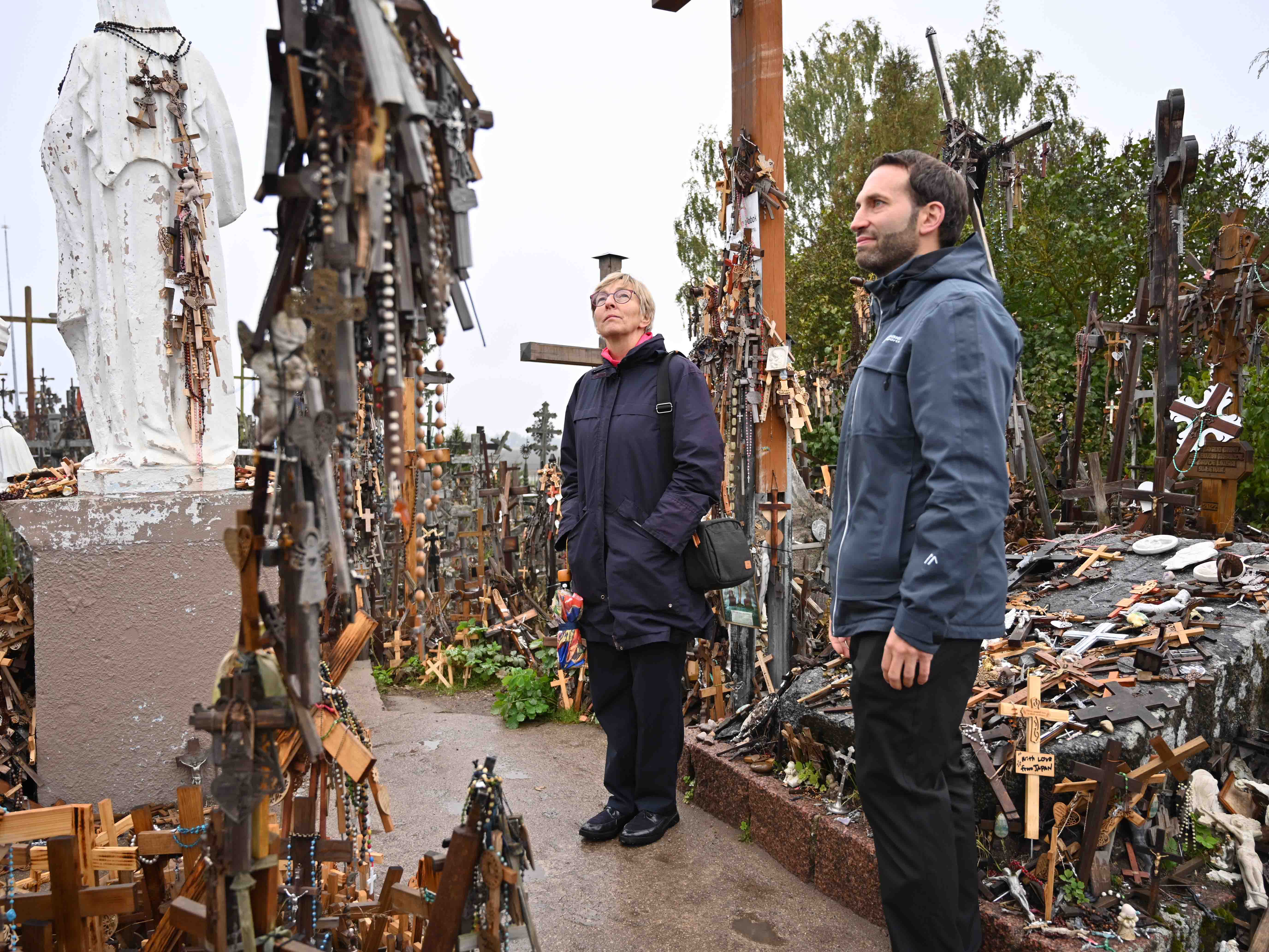 Die Besonderheit der geographischen und politischen Lage Litauens wurden den Gästen aus Augsburg spätestens am „Berg der Kreuze“ in Šiauliai hautnah vor Augen geführt. Der ursprünglich auf Legenden beruhende Wallfahrtsort wurde seit dem 19. Jahrhundert zunehmend zum Symbol des nationalen Widerstands gegen die kommunistische Herrschaft der Sowjets, wie Pater Severin (OFM) vom angeschlossenen Franziskanerkloster zu berichten wusste. Eine schmale Treppe aus Holzbohlen führt den kleinen Hügel bergan. Links und rechts säumen unzählbar große und kleine Kreuze den Weg, Rosenkränze und Engel hängen an Bäumen und Pfeilern. „Der Berg wurde zum Realsymbol für den Glauben und die Freiheit Litauens“, so der weit über 80-jährige Franziskanerpater gegenüber der Gruppe.