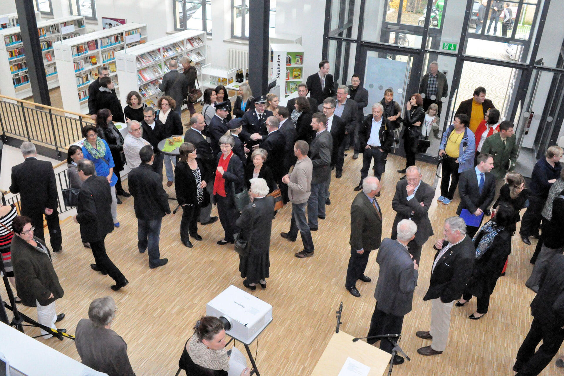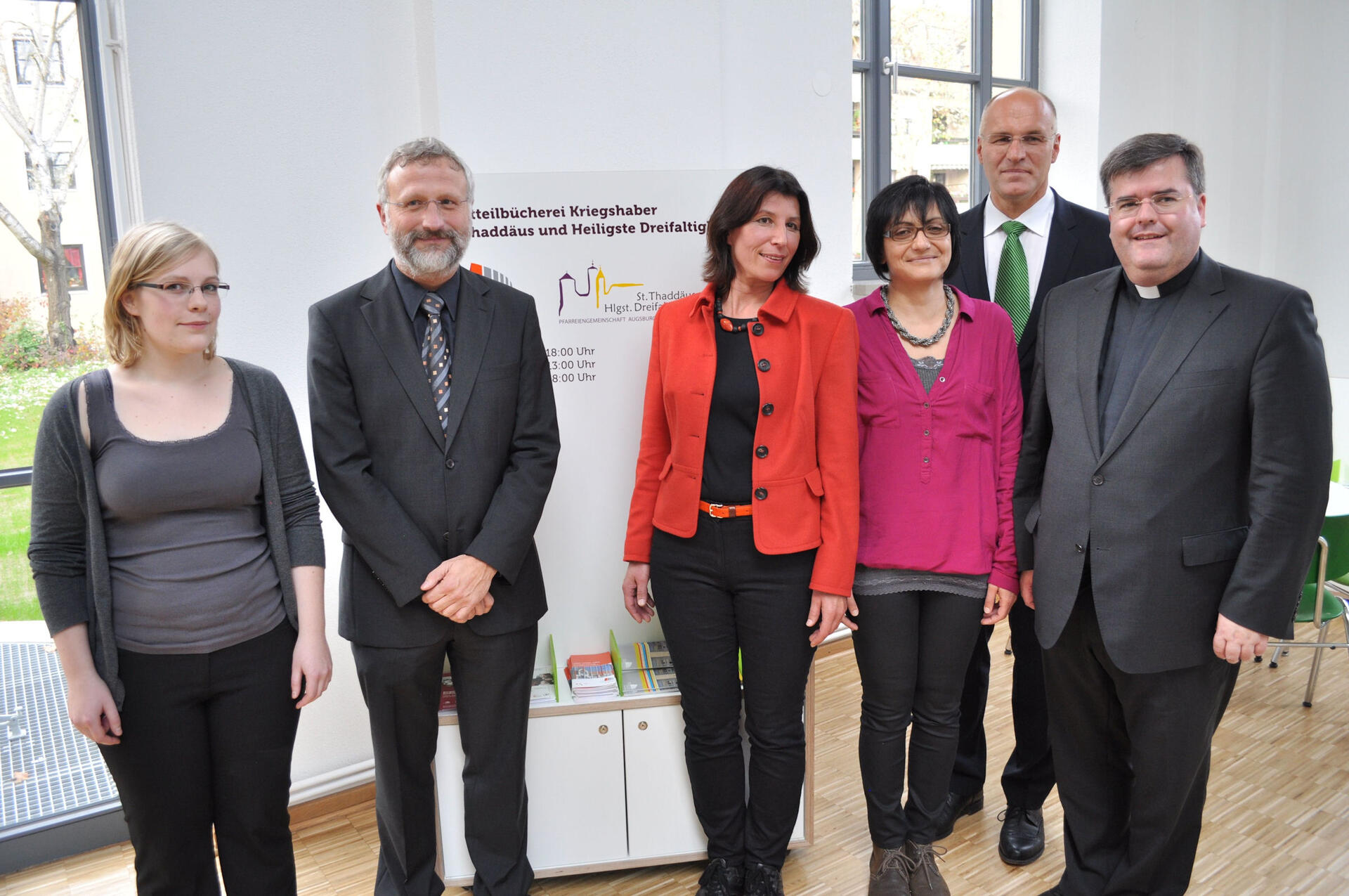 Um die Bücher zu den Leserinnen und Lesern zu bringen sind die Stadt Augsburg und die beiden Pfarrbüchereien Heiligste Dreifaltigkeit und St. Thaddäus eine für Großstädte einmalige Kooperation eingegangen: die gemeinsame Stadtteilbücherei unter der Leitung von Regine Hart. Wie Oberbürgermeister Dr. Kurt Gribl ausführte, war dieses Projekt schon lange geplant. Die Umsetzung dauerte dann Dank der guten Zusammenarbeit vieler städtischer Referate nur knapp ein Jahr.