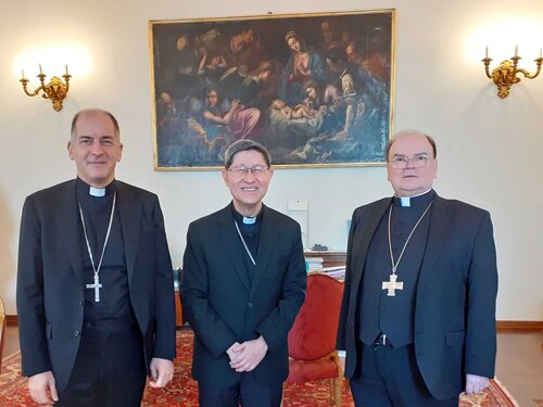 Bei seinem Antrittsbesuch als Vorsitzender der Kommission Weltkirche der Deutschen Bischofskonferenz hat sich Bischof Bertram in dieser Woche der Vatikanischen Kongregation für die Evangelisierung der Völker in Rom vorgestellt. Im Gespräch mit dem Präfekten der Kongregation, Kardinal Luis Antonio Tagle, sowie dem beigeordneten Sekretär der Kongregation und Präsidenten der Päpstlichen Hilfswerke, Erzbischof Giovanni Pietro Dal Toso, waren sich alle einig, dass das Herz der Kirche dort schlägt, wo die Armen sind und Hilfe brauchen. Ihnen das Evangelium zu bringen, gehöre zum Wesen und zur Sendung der Kirche. Die Kirche sei ihrem Wesen nach missionarisch.