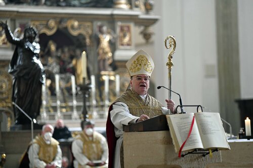 Der Rückblick in die Epochenwende um das Jahr 1800 führte Bischof Bertram vor allem eines vor Augen: Die Kirche musste seinerzeit in Folge der napoleonischen Kriege buchstäblich zu Reformen gezwungen werden, vieles Vertraute und Kostbare ging unwiederbringlich verloren, betonte er in seiner Predigt. Durch dieses „Fegefeuer“ sei sie jedoch überhaupt erst geläutert worden. „Auch heute nehmen viele Menschen innerhalb und außerhalb der katholischen Kirche einen Reformstau wahr: Schaffen wir es aus eigener Kraft, uns zu erneuern, auf die Zeichen der Zeit zu antworten? Ich hoffe es!“, zog der Bischof einen Vergleich mit der Gegenwart.