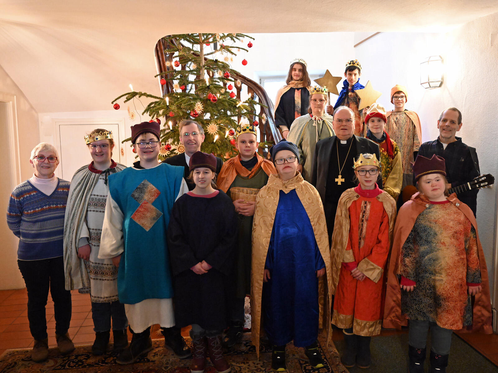 "Ein Hoffnungsstern für dich" - Unter diesem Mottolied sind zwölf Sternsinger von der Elisabethschule in Aichach nach Augsburg aufgebrochen. Station machten sie unter anderem auch im Bischofshaus, wo sie in einer bunten und quirligen Feierstunde Bischof Bertram und den Angestellten den Segen Gottes überbrachten. Begleitet wurden sie von ihrem Stadtpfarrer Herbert Gugler sowie ihrem Religionslehrer Matthias Hartung von der Lebenshilfe Aichach-Friedberg e.V.