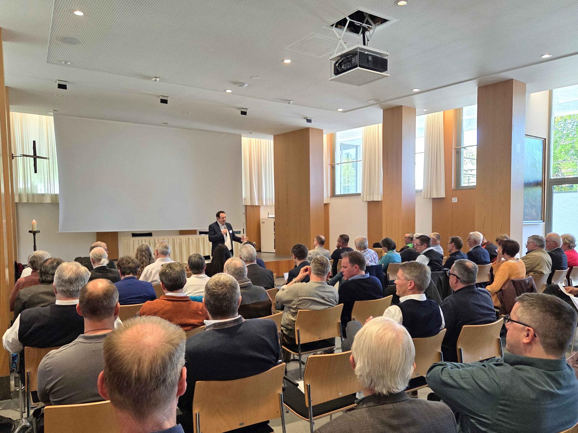 Nach dem Mittagessen war Zeit zur Begegnung, ein wichtiges Element des Diakonentags. Während sich die Ehefrauen zum Austausch trafen, stellte sich der neue Leiter der Personalabteilung, zu der auch die Diakone gehören, Pastoralreferent Danny Kasche vor. Im Gespräch wurden dann verschiedene dienstrechtliche Fragen und Belange angesprochen. Am Ende des Tages feierten die Teilnehmenden zusammen mit Domvikar Andreas Miesen, Bischöflicher Beauftragter für den Ständigen Diakonat, eine feierliche Ostervesper in der Hauskapelle.