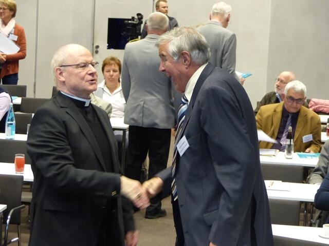 Jede Vollversammlung beginnt am Freitagnachmittag mit der heiligen Messe, die in der Regel der Bischof selbst zelebriert. Auch diesmal schlossen sich die Berichte des Generalvikars und der Vorsitzenden des Diözesanrates an. Msgr. Harald Heinrich berichtete von den noch laufenden Visitationen, die auch die Möglichkeit bieten die verschiedenen Vorhaben „Raumplanung“ zu prüfen und auszurichten. In enger Verbindung damit stehen die Ausgaben der Diözese, insbesondere der sog. Instandsetzungsetat, der in diesem Jahr bei 37 Mio. EUR liegt, um Sanierungen/Renovierungen zu ermöglichen. „Wo brauchen wir überall Pfarrbüros? Wie schaut es mit Versammlungsräumen in den Pfarreien aus – ganz konkret: Wie viele Pfarrheime können wir uns leisten und vor allem auch im Blick auf die konkreten Zahlen und Bedürfnisse der Pfarreien – brauchen wir wirklich?“ Auch sollen die Pfarreiengemeinschaften und größeren Pfarreien von einem Übermaß an Verwaltungsarbeit entlastet werden. Deshalb sind derzeit auf knapp 17 Planstellen 22 Verwaltungsleiterinnen und Verwaltungsleiter tätig. Ein neuer Berufszweig also, der Kirchenpfleger und Kirchenverwaltungen entlastet, z.T. bereits auch ersetzt. In anderen Personalbereichen kann man weniger von Aufbau und Ausbau sprechen, sondern muss von einem Rückgang ausgehen, nicht nur was die diözesanen Priesterberufungen betrifft (auch wenn es da jüngst eine Aufwärtsbewegung gab), sondern vor allem was die Stellen für Gemeindereferenten betrifft. Letztere bleiben nämlich in Ermangelung von Bewerbern oder Zugriff der Kandidaten auf die Stellen zu oft unbesetzt, während Stellen für Priester noch ganz gut ausgefüllt werden durch ausländische Priester. Diese verfügen nämlich auch über eine große Flexibilität, was ihren Einsatzort betrifft, während hauptamtliche Laien durch ihre Familien stärker an die Standorte der Schulen, die ihre Kinder besuchen, und deren Freundeskreis gebunden sind. (siehe am Ende des Artikels den vollständigen Bericht)