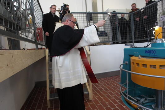 Augsburg (pba). Das modernisierte Wasserkraftwerk des Augsburger Priesterseminars St. Hieronymus in Augsburg ist am 3. Februar seiner Bestimmung übergeben worden. Generalvikar Prälat Karlheinz Knebel segnete die mit modernster Technik ausgestattete Turbine auf dem Gelände des Seminars. Das Wasserkraftwerk deckt den Energiebedarf für das Seminar und das Studentenwohnheim des Priesterseminars. Regens Martin Straub freut sich, dass mit diesem neuen Kraftwerk die Verantwortung für die Schöpfung mit dem Energieverbrauch des Hauses in ein gutes Miteinander gebracht werden könne. Dabei steht das Kraftwerk in guter Tradition mit dem Energiekonzept der Diözese Augsburg.