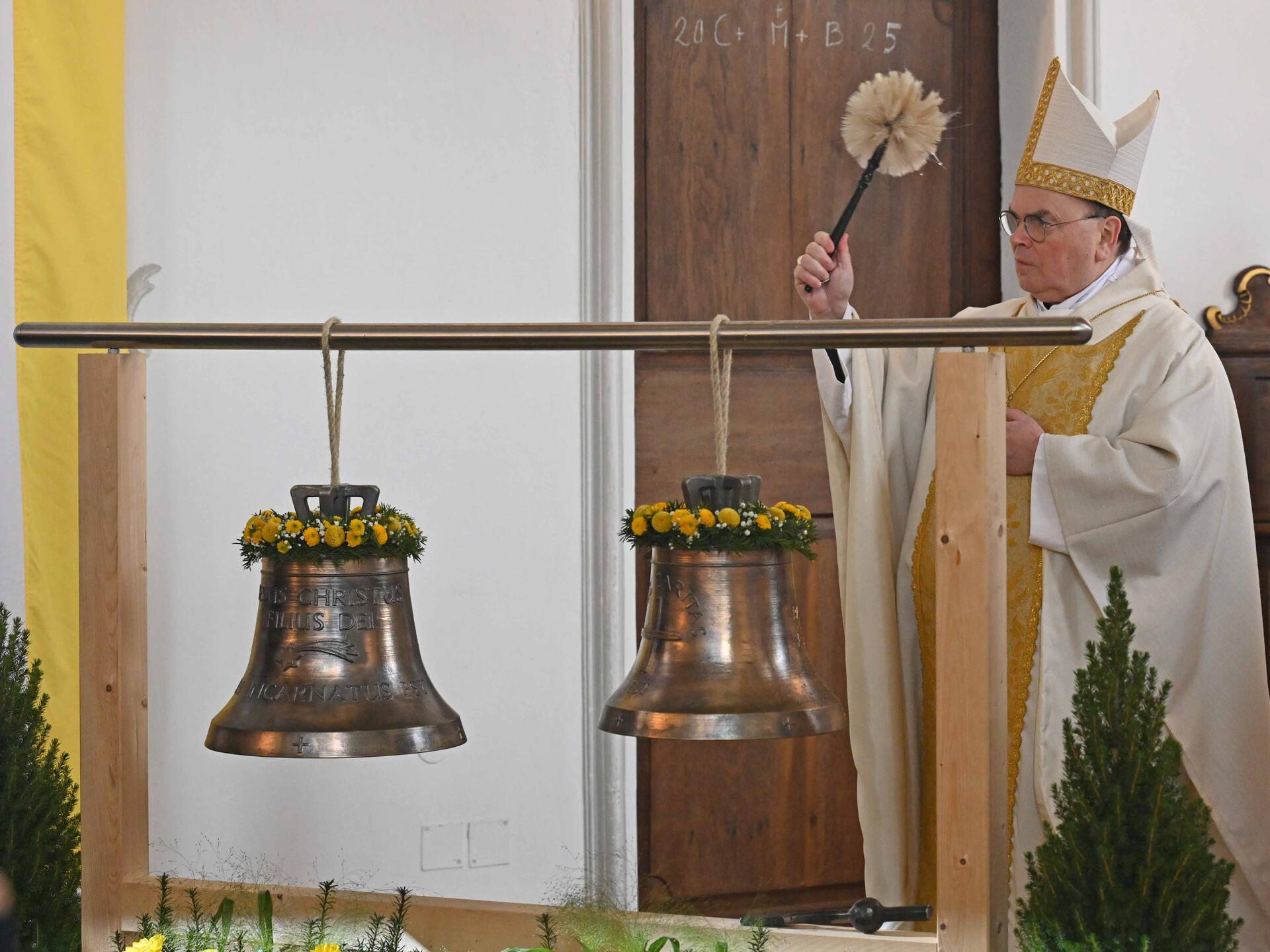 Den kirchlichen Segen erhielten die beiden Glocken durch Bischof Bertram, der sie im Rahmen der Zeremonie mit Chrisam salbte und ein Gebet sprach. Mit Hilfe eines Hammers erzeugten Gemeindemitglieder den ersten Ton. Erst nach dem durch den Kirchenchor gestalteten Gottesdienst in der Pfarrkirche wurden sie in einem Festumzug zu ihrem eigentlichen Bestimmungsort in die Leonhardskapelle gebracht.