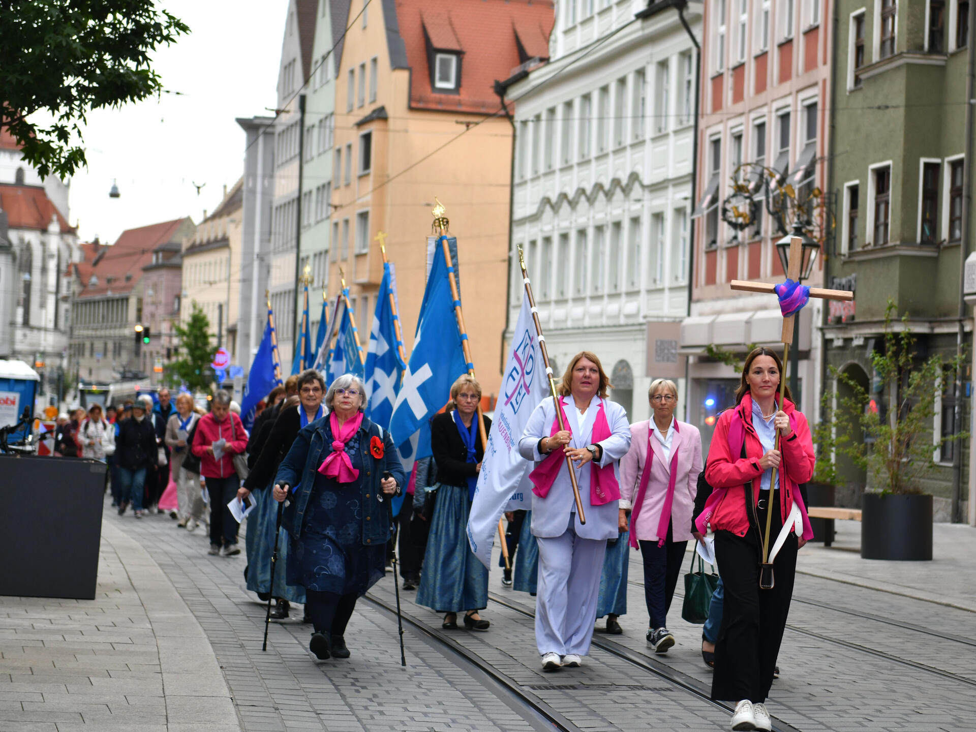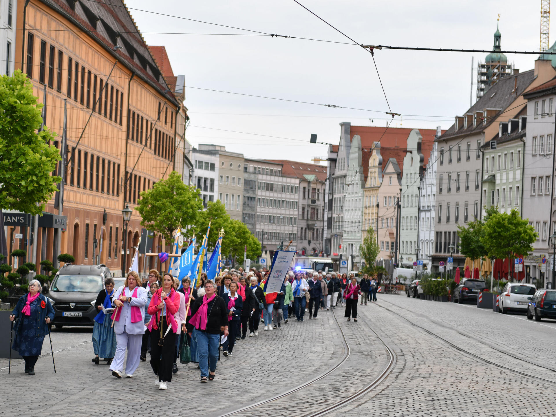 Es war fast regnerisch und von sommerlichen Temperaturen rein gar nichts zu spüren, aber davon ließen sich rund 250 Frauen aus Nah und Fern nicht abschrecken. Wie jedes Jahr am Mittwoch um sechs Uhr in der Früh machten sie sich in der Ulrichswoche auf den Weg vom Dom über die Maximilianstraße bis hin zur Basilika St. Ulrich und Afra. Sie setzten damit ein ausdrucksstarkes Zeichen für ihren Glauben und den Frieden, der die Frauenwallfahrt seit ihren Anfängen prägt. Nach einem feierlichen Empfang mit Orgelspiel und Glockenklängen rundete eine Messe mit dem Andechser Klosterabt Johannes Eckert OSB das morgendliche Pilgern ab.
