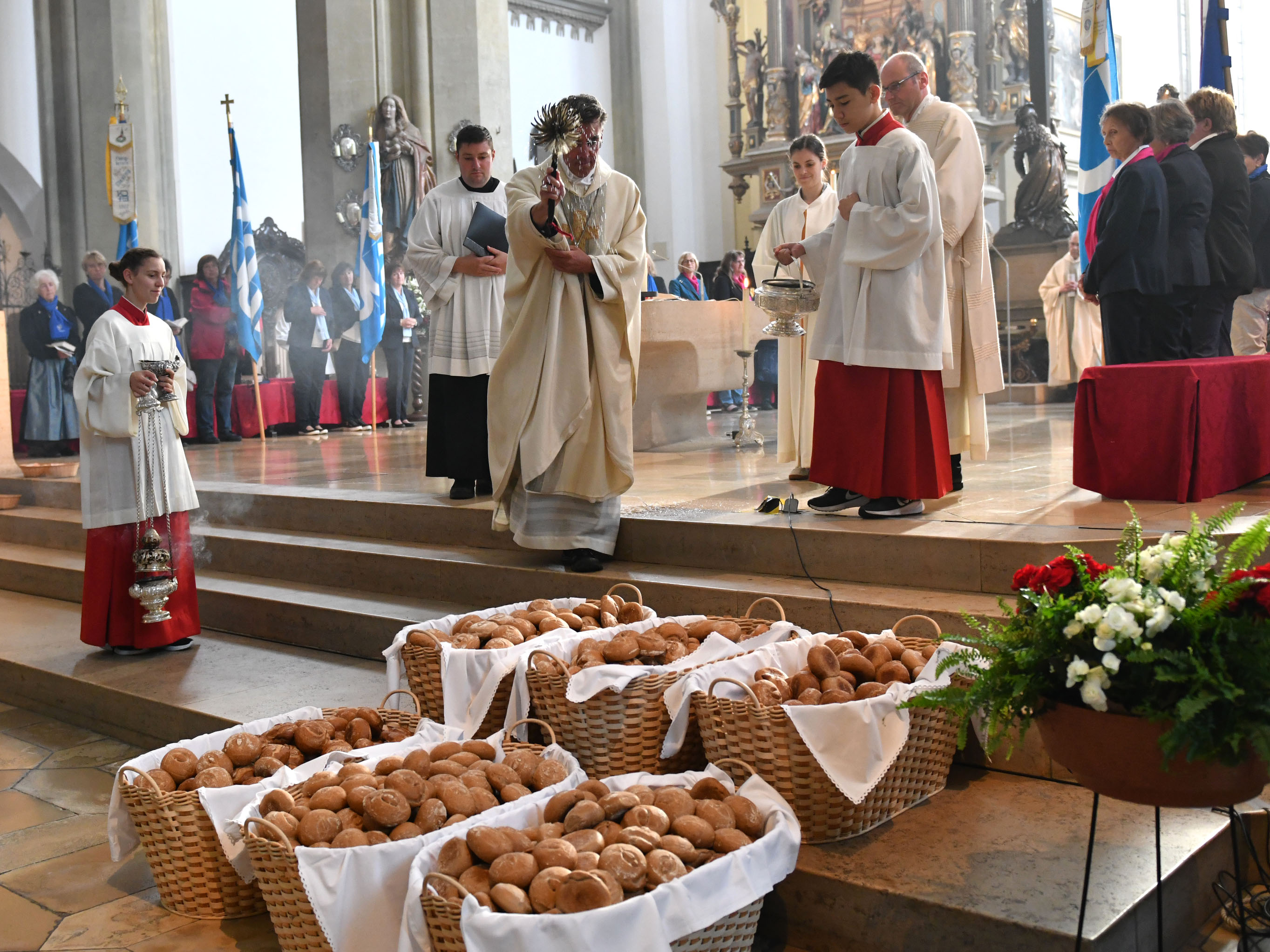 Am Ende der Messe segnete Abt Johannes die Ulrichsbrote, die heuer wieder verheißungsvoll duftend in sechs großen Körben vor dem Altar standen. Die „Doppelsemmeln“, die zum Teilen einladen sollen, gehen bereits auf die Ursprünge der Wallfahrt 1947 und ihrem Gebet um Frieden und Versöhnung zurück. Die Tradition wird seither aufrechterhalten. Gegen Spende werden die Brote am Ende an die Frauen verteilt. Im gemeinschaftlichen Miteinander beim Frühstück klang auch heuer die Wallfahrt der Frauen im Haus Sankt Ulrich aus.