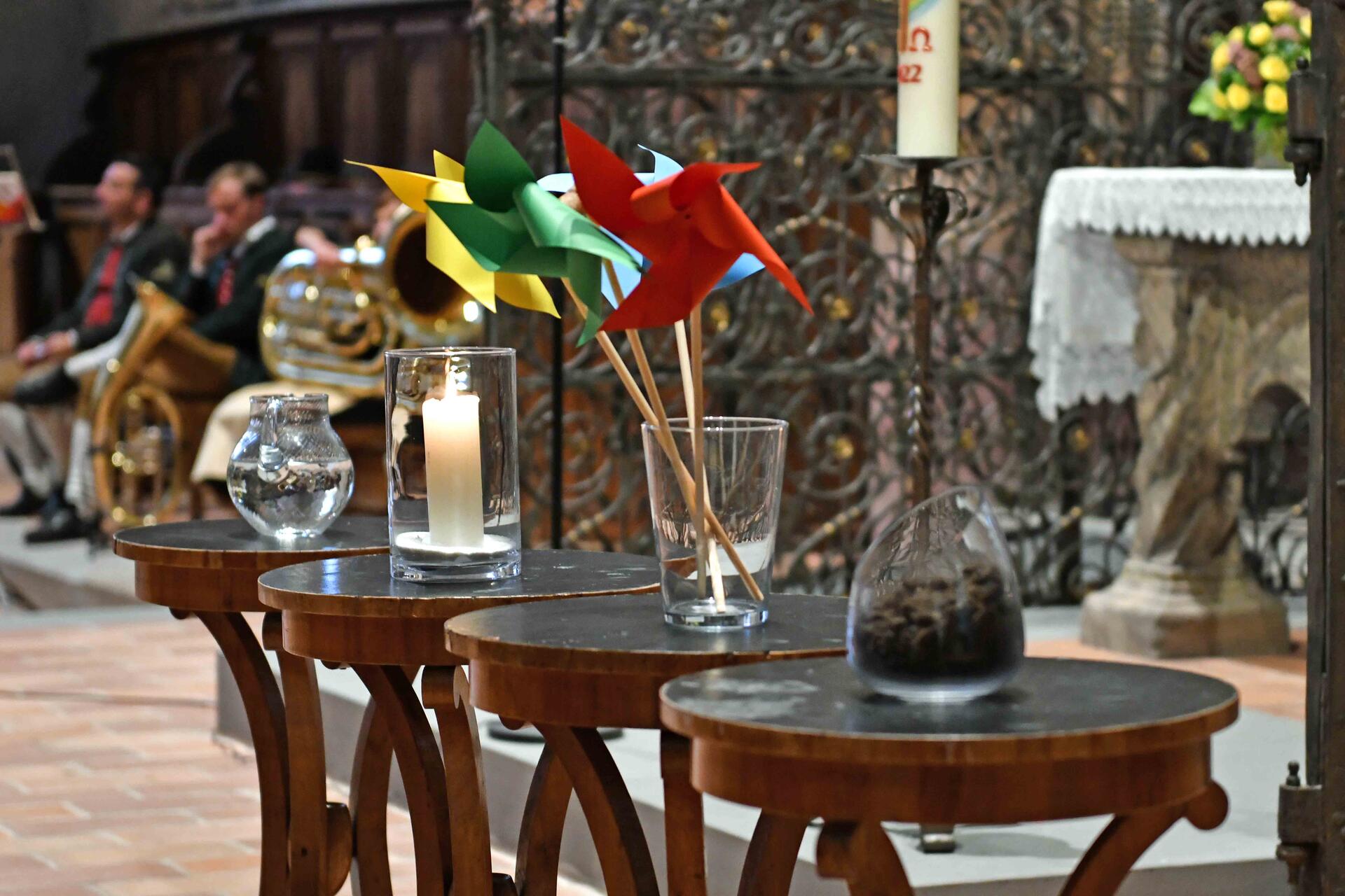 Die vier Elemente Erde, Luft, Feuer und Wasser standen an diesem Samstagabend in der evangelischen Kirche St. Martin in der Memminger Innenstadt im Fokus der ökumenischen Andacht zum diesjährigen „Tag der Schöpfung“. Vor allem Letzterem, dem vorhergesagten feuchten Nass vom Himmel, war es zu verdanken, dass der geplante Freiluft-Gottesdienst vom Grünen der Grimmelschanze in das gotische Kircheninnere verlegt werden musste.