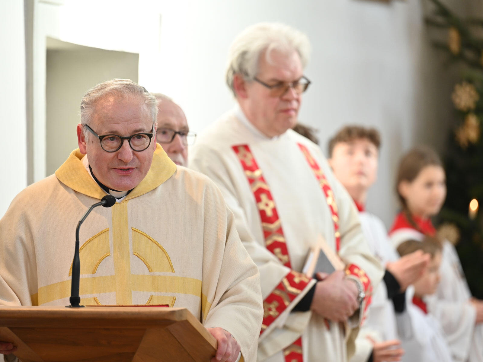 Diese Verbundenheit mit Gott sei besonders im Leben der heiligen Adelgundis spürhaft geworden, deren Leben in einem dreiteiligen Bildzyklus des Anhauser Malers Otto Michael Schmitt dargestellt werde. Die im 7. Jahrhundert lebende merowingische Königstochter habe dem Willen ihrer Eltern gemäß in ein englisches Königshaus einheiraten sollen, widersetzte sich diesem Wunsch aber und floh in den Wald, wo sie zunächst als Einsiedlerin unter schwierigsten Bedingungen dem Ruf Gottes für ihr Leben hinterherspürte und später in ein Kloster eintrat. Adelgundis hatte ihre Berufung gefunden – ein Vorbild, das auch heute noch inspirieren könne, so der Bischof: „Es ist die wichtigste Aufgabe unseres Lebens, gut hinzuhören und zu erkennen, wohin uns der Herr führen möchte.“