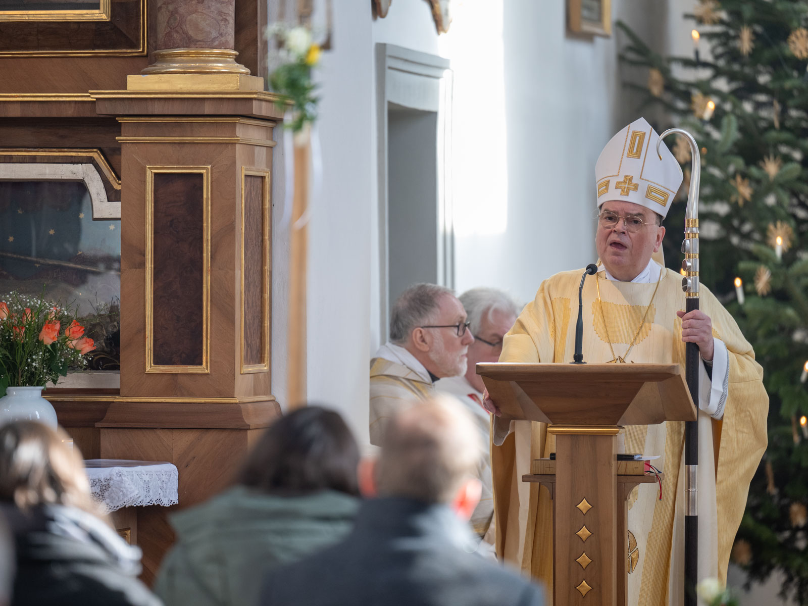Anlässlich des Abschlusses der Sanierungsarbeiten an der Pfarrkirche St. Adelgundis in Anhausen bei Diedorf hat Bischof Bertram das Leben der Kirchenpatronin in den Blick gestellt, deren Fest am selben Tag gefeiert wurde. Die heilige Adelgundis habe ihr Leben lang immer dem Ruf Gottes nachgespürt – und bereits im Frühmittelalter vorgelebt, wie Gottes- und Nächstenliebe stets zusammengehören.
