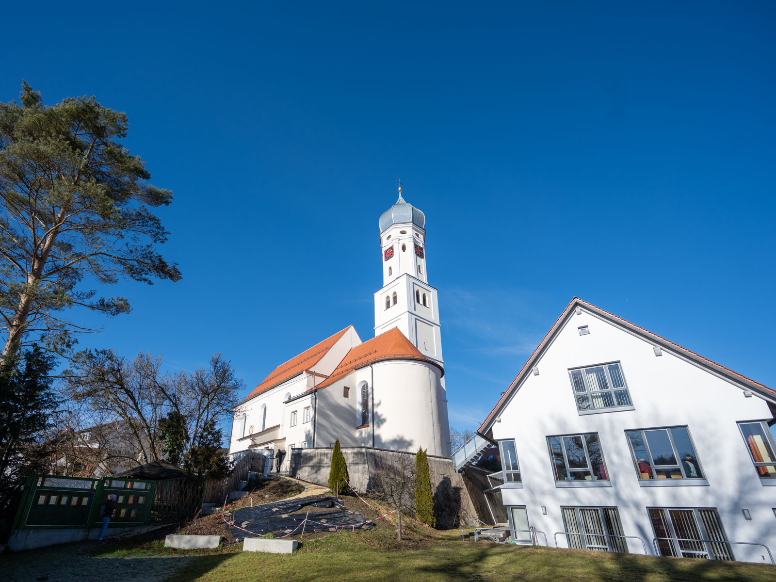 Nachdem bei Standortuntersuchungen erhebliche Mängel am Dachstuhl sowie Risse am Bauwerk der Pfarrkirche festgestellt wurden, begann die Kirchenverwaltung von St. Adelgundis 2021/22 eine umfassende Kirchenaußenrenovierung, in deren Rahmen unter anderem das historische Schindeldach des Kirchturms neu eingedeckt, der Dachstuhl saniert und das Fundament erneuert wurde. Für Kirchenpfleger Josef Zott handelte es sich bei der mehr als zwei Millionen Euro teuren Sanierung um einen großen Erfolg: „Wir konnten nicht nur alle Statikprobleme beheben, sondern ausgezeichnet lösen, so dass die Kirche auch für die kommenden Generationen Bestand haben kann.“ Eine besondere Herausforderung sei dabei neben dem Schutz der in der Kirche beheimateten Turmfalken und Langohrfledermäuse auch die Dachsanierung gewesen, in deren Rahmen die Stuckdecke der Kirche komplett gewahrt bleiben konnte: „Das ist alles ausgezeichnet gemacht worden.“