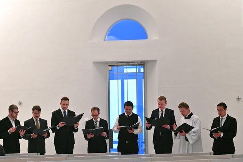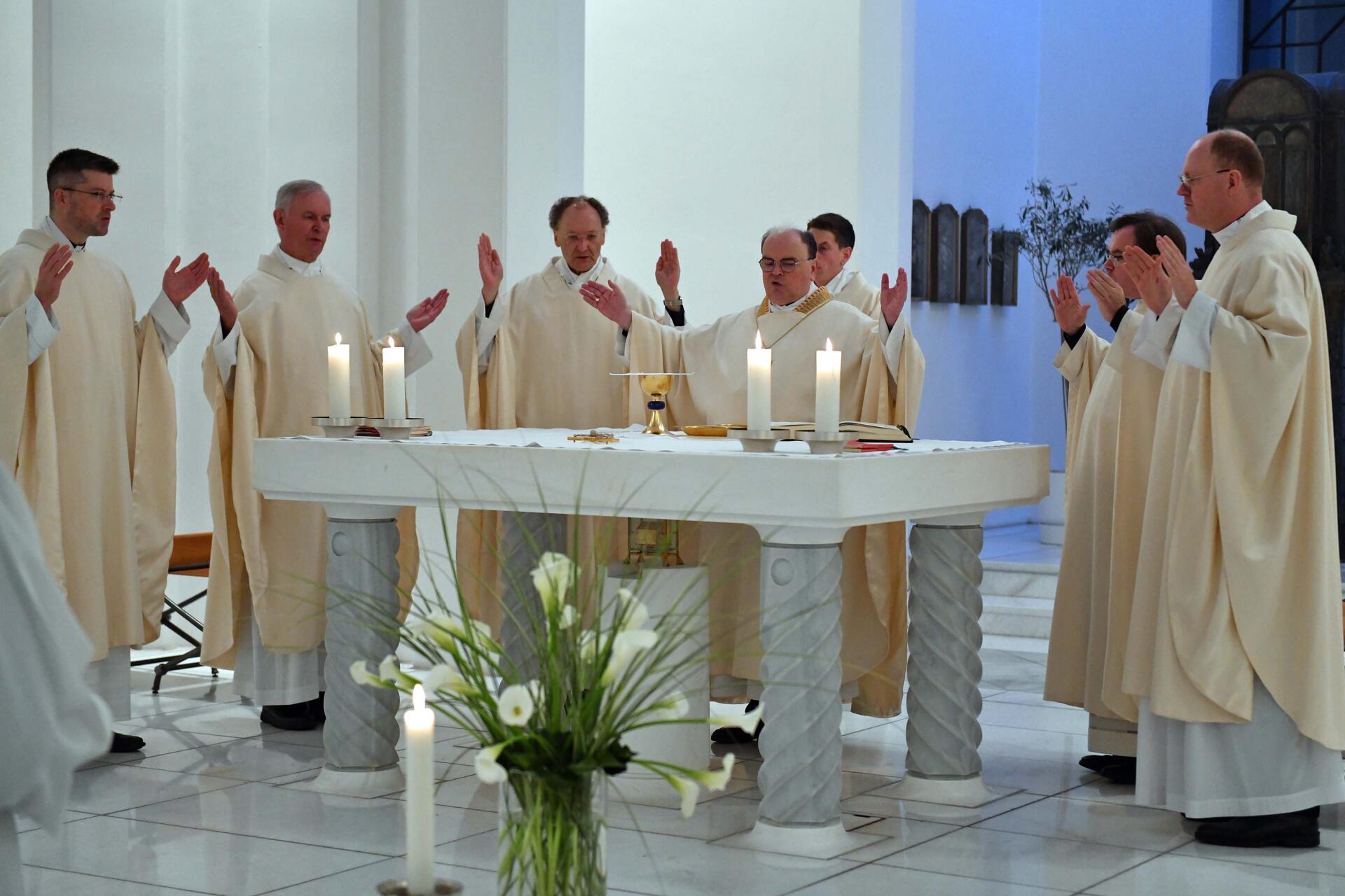 „Knien vor dem Herrn“: Mit großer Freude stellte Bischof Bertram fest, dass innerhalb der Mauern des Priesterseminars die Anbetung regelmäßig gepflegt werde. „Das ist nicht nur Gymnastik, sondern eine Haltung. Anbetung als Lebensform. Streichen Sie nie die Anbetung aus Ihrem Kalender.“ Denn Anbetung solle zur Quelle werden, um Hinauszugehen, damit das Gehen mit dem Herrn ein Fundament werde.
