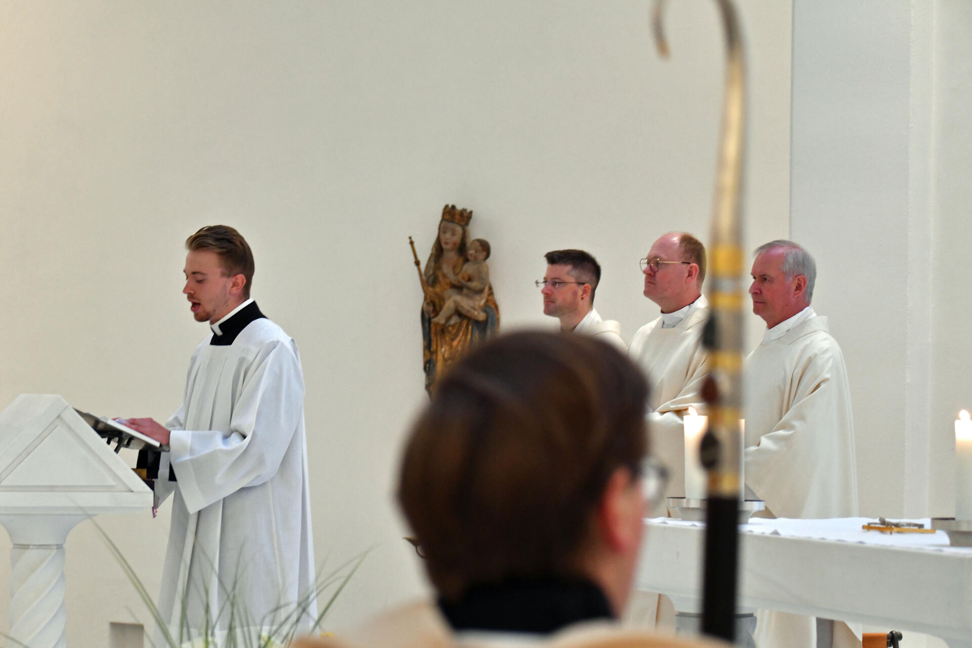 Den Einführungsgottesdienst für den neuen Regens feierten zusammen mit Bischof und Generalvikar weitere in der Priesterausbildung tätige Geistliche, etwa Subregens Domvikar Albert Wolf, Spiritual Monsignore Bernhard Ehler, Pastoralpsychologe Manuel Beege, ebenso wie Mitglieder des Professorenkollegiums der theologischen Fakultät, Mitarbeiterinnen und Mitarbeiter des Priesterseminars sowie Freunde und Verwandte des Regens. Eine Schola aus Seminaristen umrahmte den Gottesdienst musikalisch.