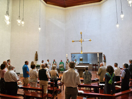 Am Montag hat Bischof Bertram mit den Ständigen Diakonen der Weihejahrgänge 1993-97 im Haus Sankt Ulrich einen Gottesdienst zum Weihejubiläum gefeiert. In seiner Predigt ging der Bischof auf die Herausforderungen des diakonalen Dienstes ein und erinnerte daran, dass die Tätigkeit als Diakon nicht nur am Wochenende ausgeführt, sondern im Alltag gelebt werden sollte.