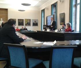 Am Freitagabend erfolgte eine erste Annäherung an das Thema mit dem Kurzfilm „Religion auf der Grenze“. Anhand von drei fundamentalistischen Gruppen aus dem Christentum und Islam wurde vorgestellt, welche Einstellungen sich hinter diesen Formen „des Glaubens“ verbergen. Eine Exkursion nach Tübingen in die Neue Aula der Eberhard-Karis-Universität führte zu einer Tagung des Institutes für Ökumenische und Interreligiöse Forschung und dem Zentrum für Islamische Theologie, in der es um Ansätze zu einer „Theologie des Zusammenlebens“ und den Beitrag der beiden Religionsgemeinschaften dazu ging. Zwei Referenten stellten zunächst dazu Überlegungen aus der christlichen und islamischen Mystik vor. Möglichkeiten des gemeinsamen Betens und kirchlichen Tuns wurden aufgezeigt, worin sichtbar wurde, dass es gerade in der heutigen Zeit der Globalisierung vor allem auch in der Verantwortung der großen Religionsgemeinschaften liege, das Zusammenleben auch spirituell zu fördern. In einem Podiumsgespräch stellten dann Vertreter beider Gruppen praktische Beispiele des Miteinanders an der Basis vor.