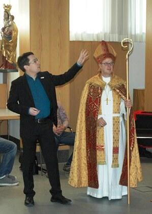 Alle Jahre wieder Anfang Dezember laden Kindertageseinrichtungen, Schulen, Vereine und Familien den heiligen Nikolaus zu ihren Feiern ein. Um auf die bevorstehende Aufgabe gut vorbereitet zu sein, haben sich am Wochenende 20 Frauen und Männer im Exerzitienhaus St. Paulus in Leitershofen getroffen, um mehr über die Gestalt des heiligen Nikolaus, seine Botschaft und das mit ihm verbundene Brauchtum zu erfahren. Einige der Teilnehmer sind bereits seit vielen Jahren als Nikolaus aktiv, andere werden diese Aufgabe neu übernehmen. Eines hatten aber alle gemeinsam: Sie interessieren sich theologisch, religions- und brauchtumsgeschichtlich für den Bischof aus Myra. Durch das praxisorientierte Seminar führte Niklas Wagner, Referent für christliches Brauchtum beim Bonifatiuswerk Paderborn.